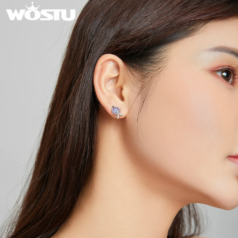 WOSTU Настоящее 925 стерлингового серебра милые серьги-гвоздики в в...