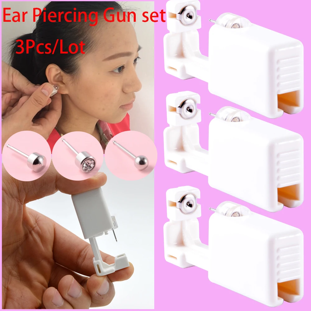 3 шт.компл. одноразовая Стерильная игла для уха прибор для пирсинга из нержавеющей стали, пупка, пирсинг пистолет, не причиняя боли инструмент для пирсинга машина комплект серьги-гвоздики ювелирное изделие