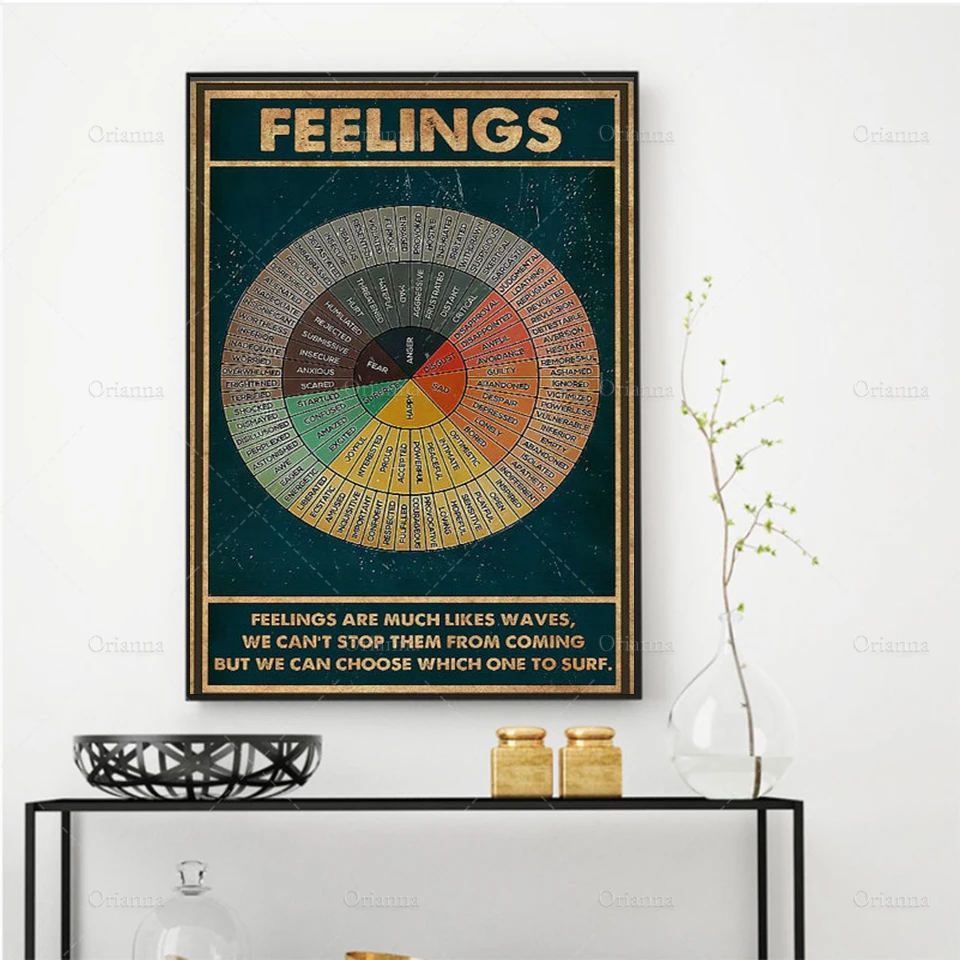 Эмоции колесо социальное ощущение психическое здоровье будьте добры к вашему разуму плакат, печать настенное искусство, вывески для дома печать на холсте
