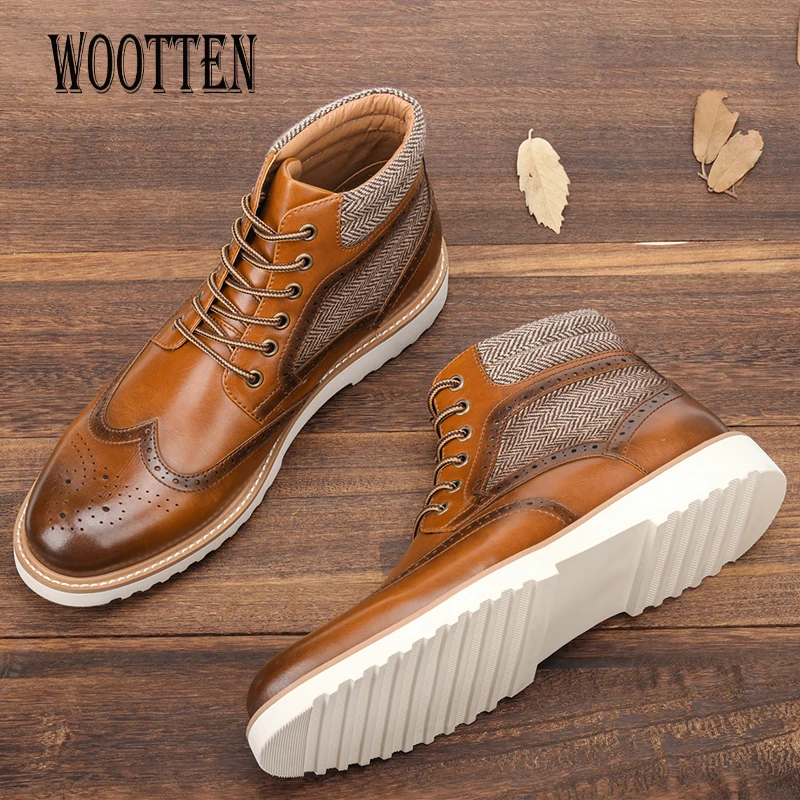 Мужские кожаные ботильоны, модный бренд WOOTTEN, удобные легкие ботинки для мужчин, размер 7-12, 2021, # AL612