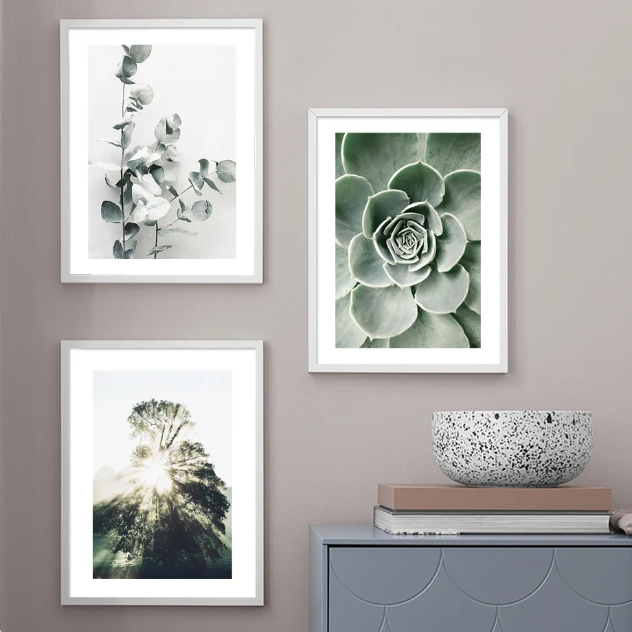 Плакат с изображением тюльпанов, кактусов, суккулентов, пальмовых л...