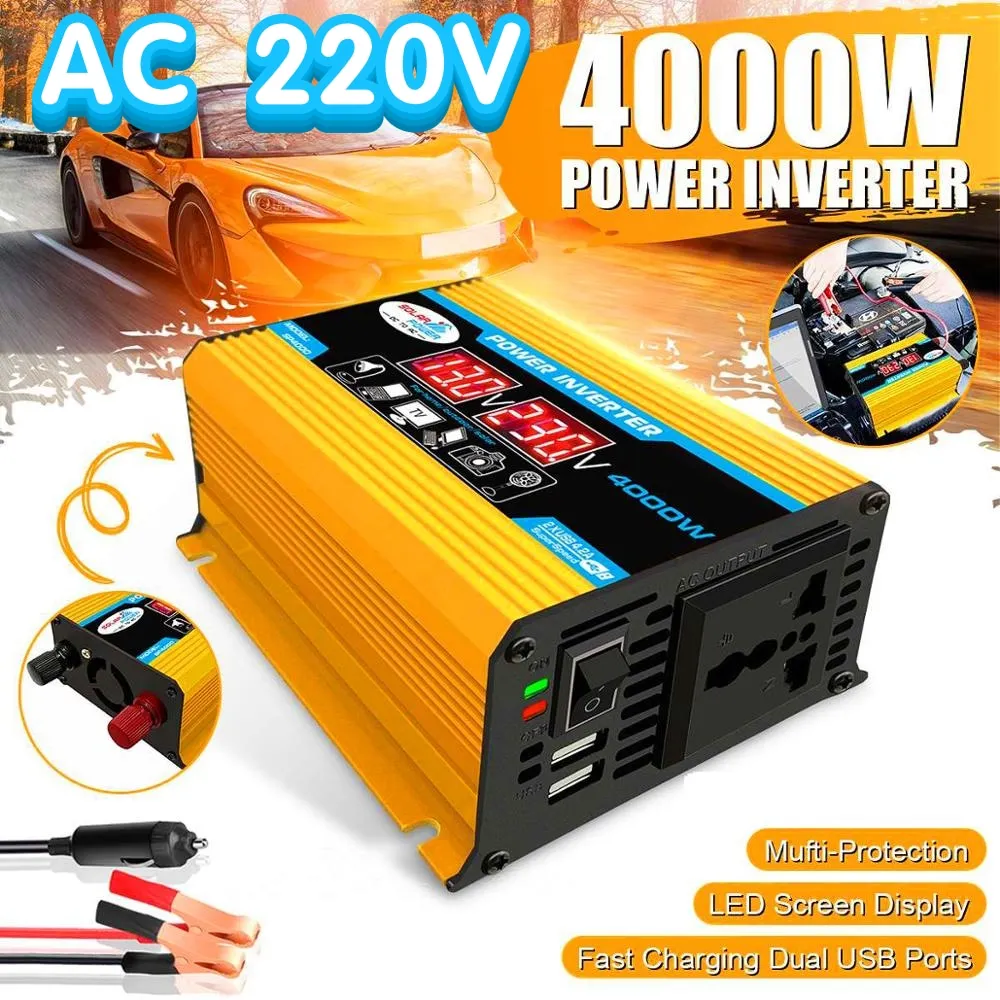 Автомобильный Мощность инвертор 4000W 12V to220V конвертер для дома Мощность телефон Зарядное устройство для ноутбука светильник аварийного освещения с функцией зарядки от Мощность