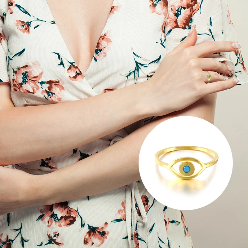 Aide 925 стерлингового серебра Золотой Злой Глаз Кольца для женщин, Ретро стиль, в богемном стиле, украшенные разноцветными кристаллами Тарельчатая вечерние, хорошее ювелирное изделие, подарок