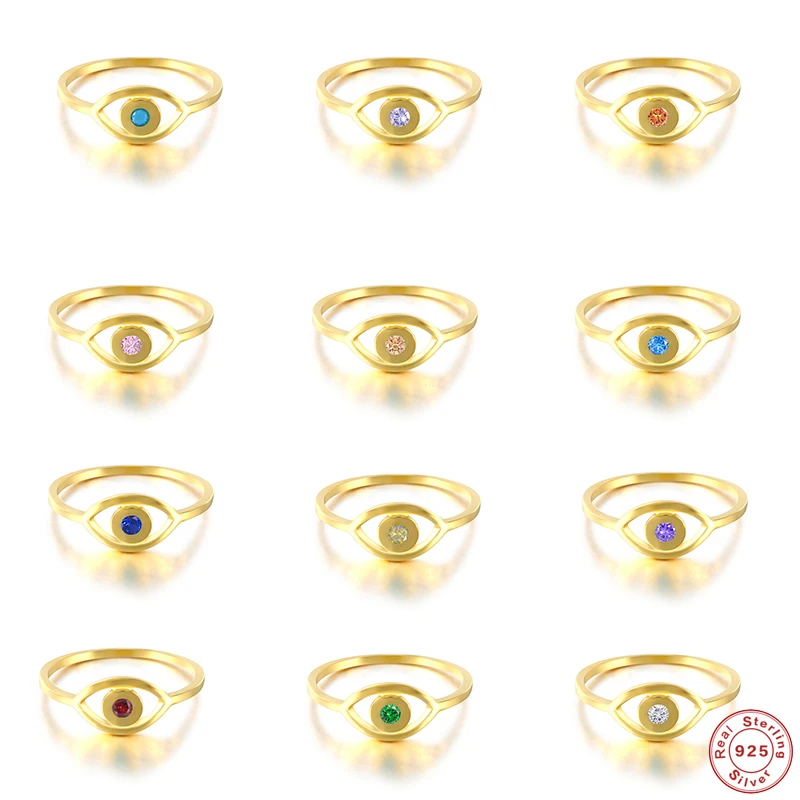 Женское Винтажное кольцо в стиле бохо из стерлингового серебра 925 пробы с золотым сглаза, с цветными кристаллами, вечерние ювелирные украшения
