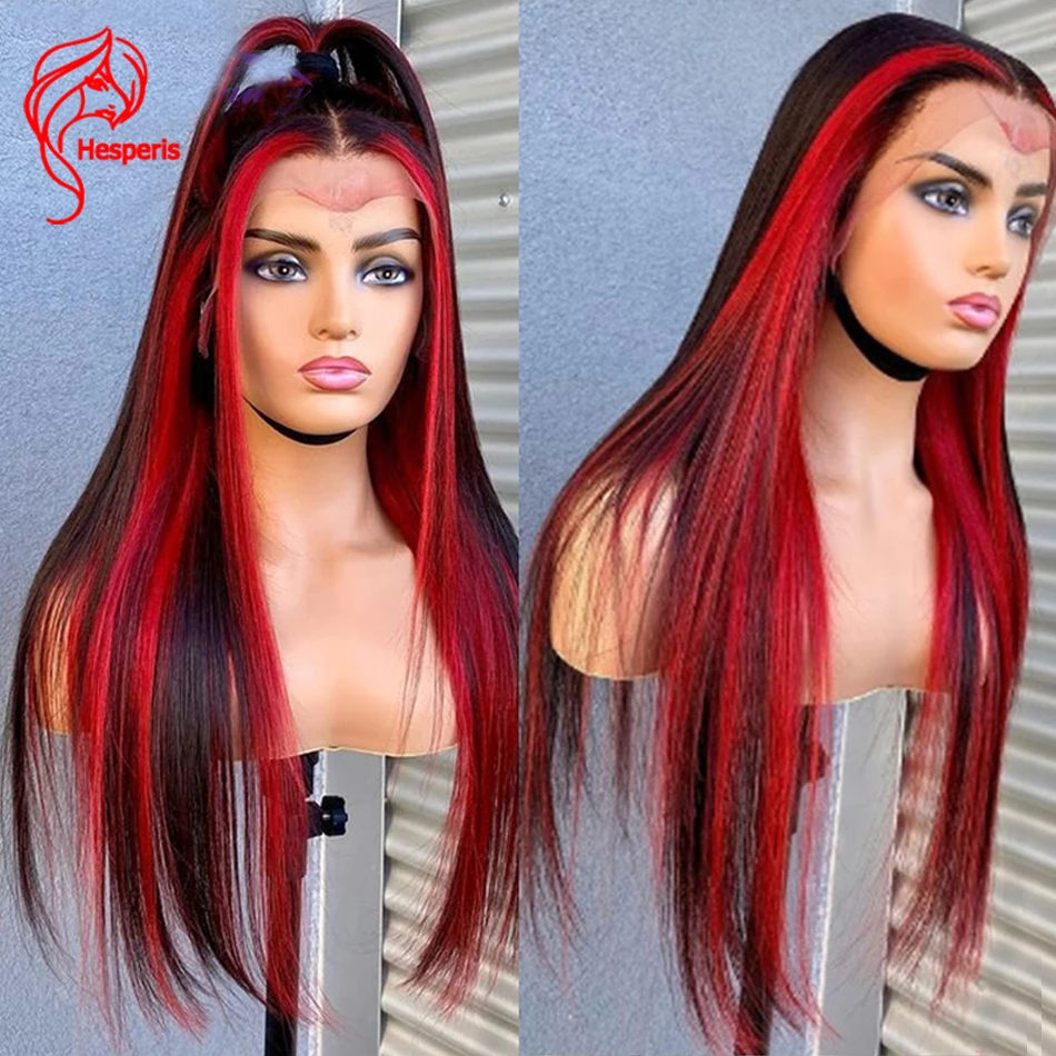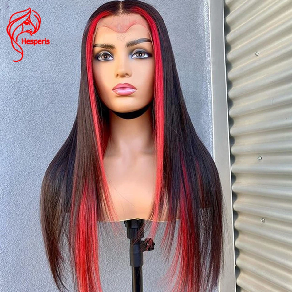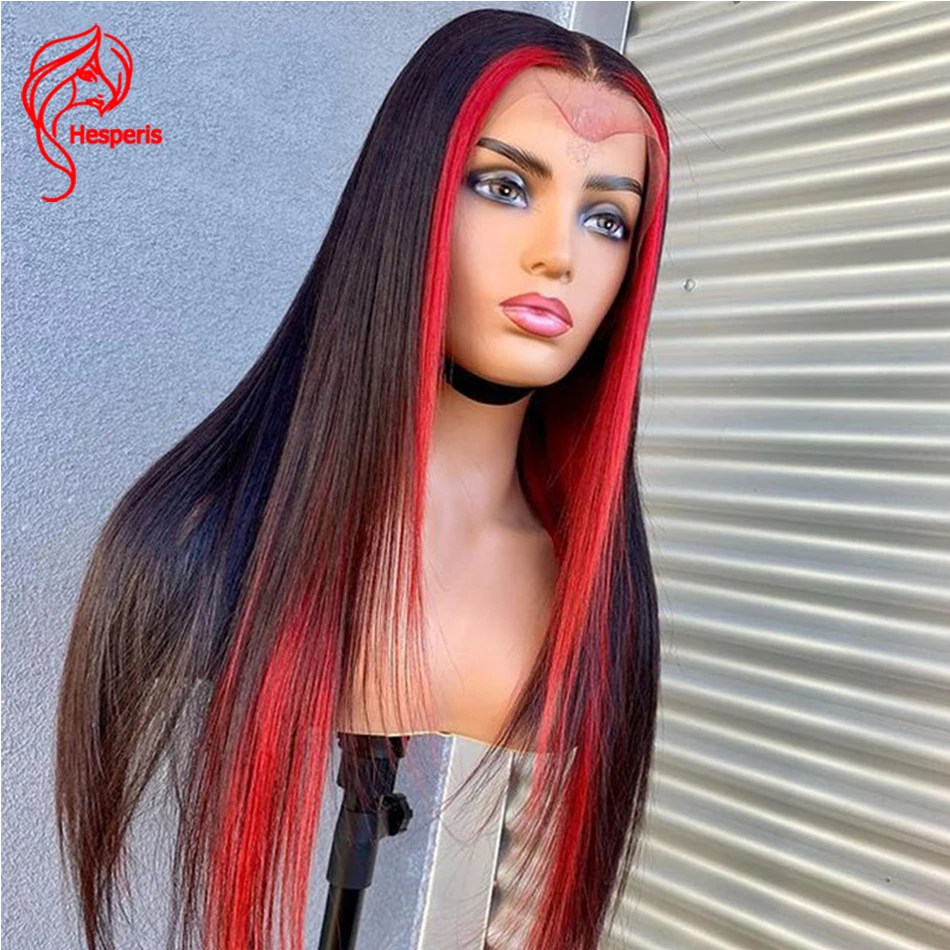 Hesperis человеческие волосы с красной подсветкой на фронте, парики средней части бразильские Remy 13x4, парики из человеческих волос для черных женщин