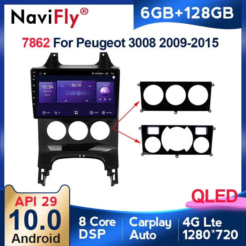 NaviFly 6 ГБ + 128 Гб 8 ядер Carplay QLED 1280*720 Android 10,0 радио GPS автомобильный мультимедийный плеер для Peugeot 3008 1 2009 - 2016
