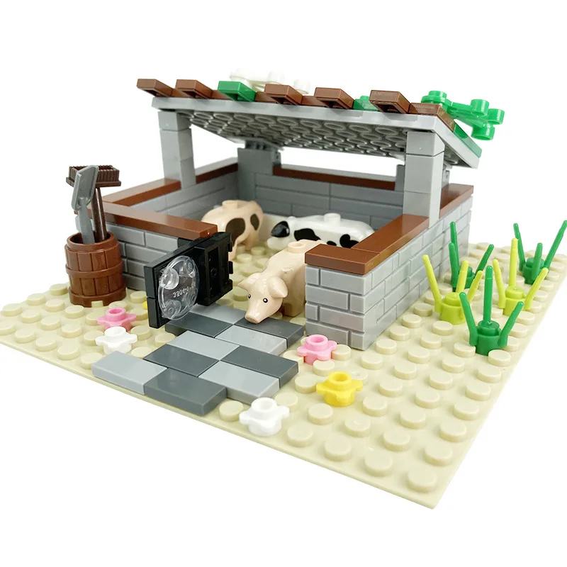 Городской MOC серии игрушки для детей курица сарай овощное поле бульдог корова животные морковь города совместимые строительные блоки игрушки