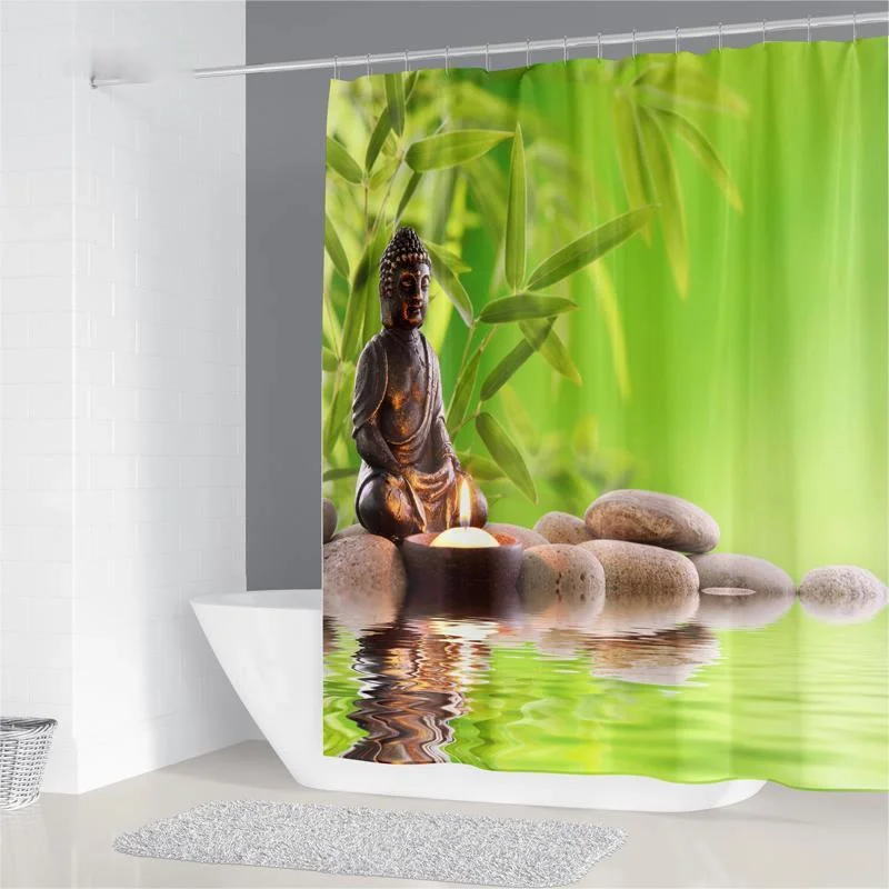 Водонепроницаемая занавеска для душа, 3D бамбуковая занавеска для душа, Проточная вода, зеленый бамбук, Будда, плесень