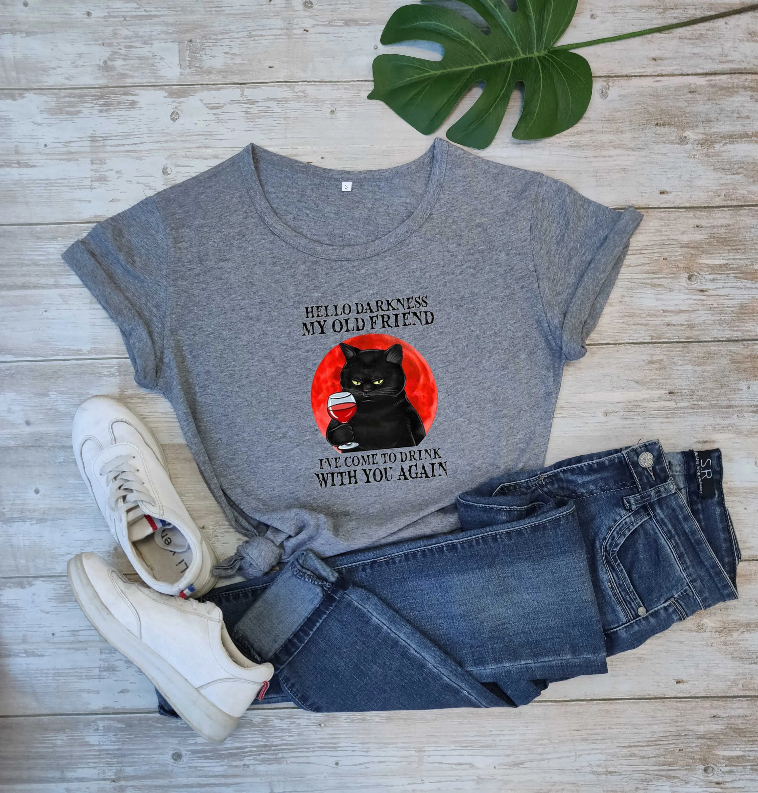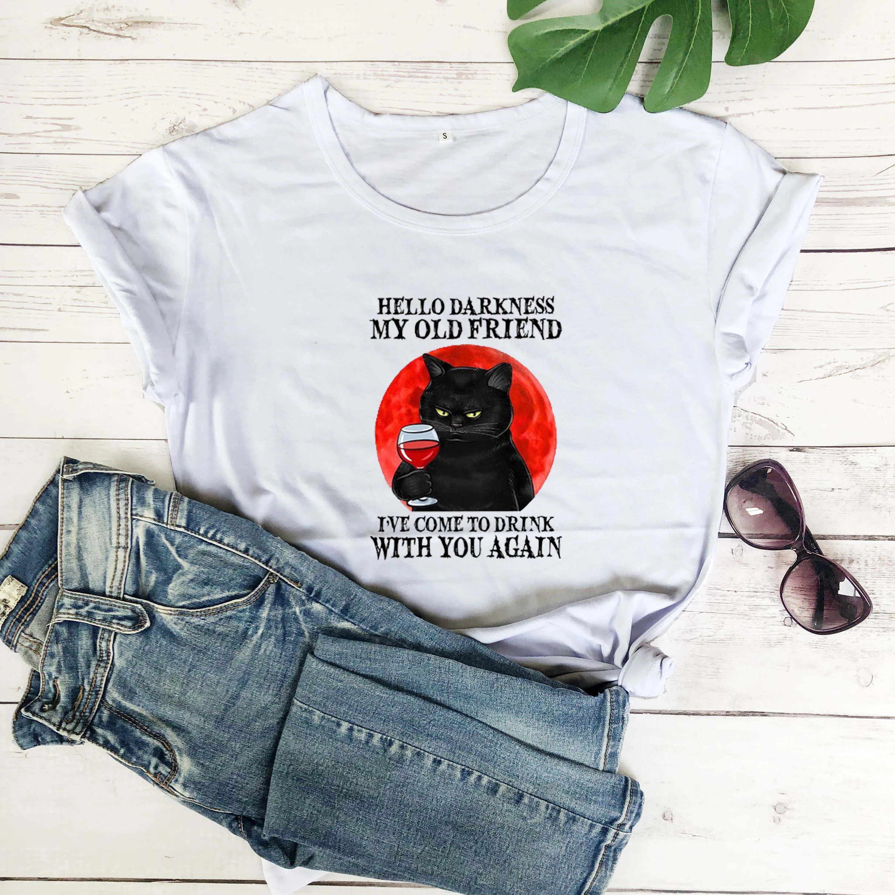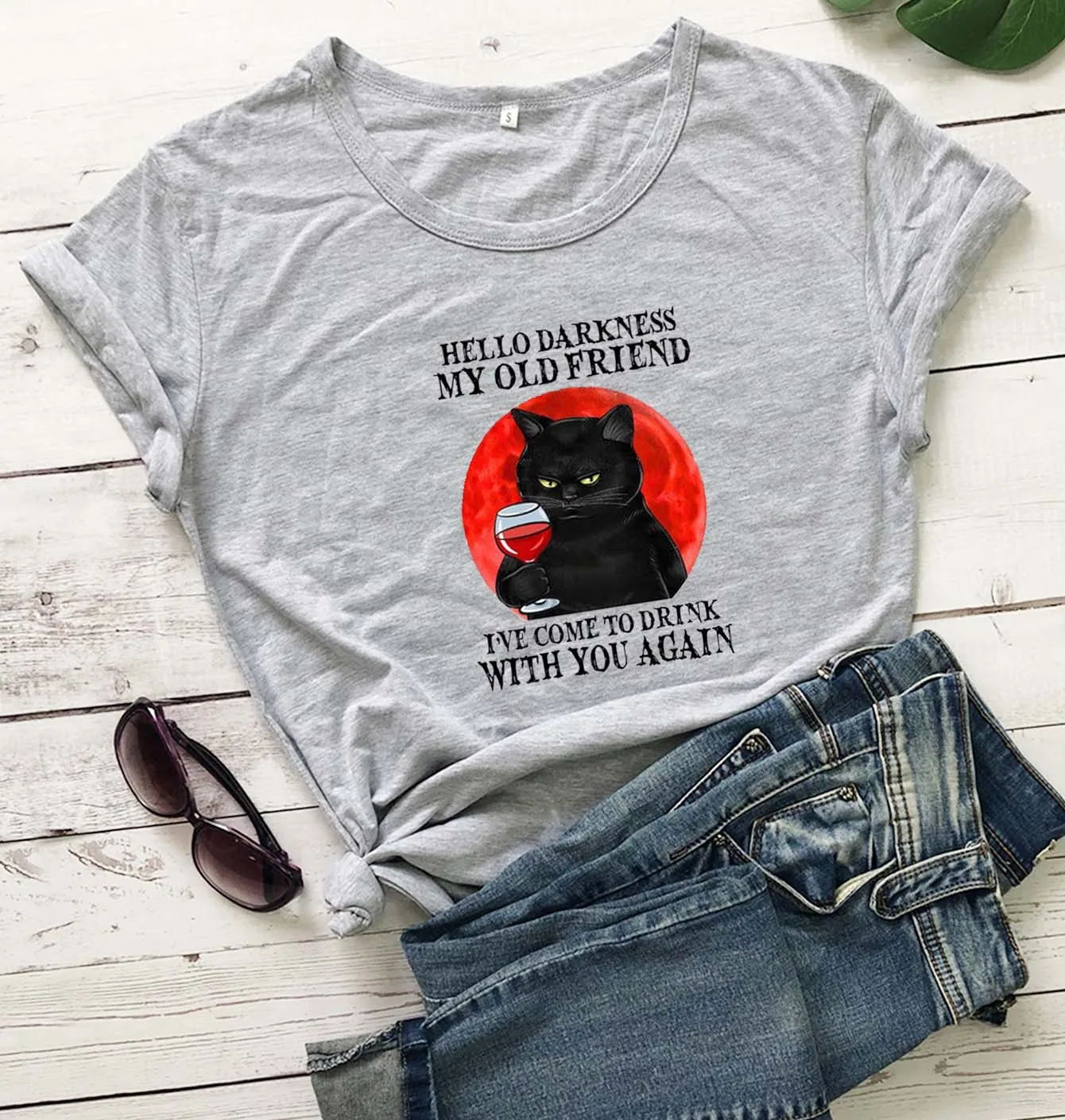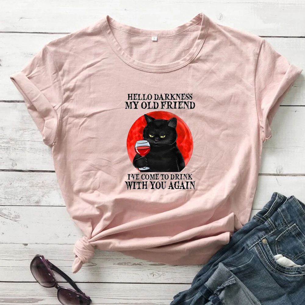 Здравствуйте, темнота, мой старый друг, я снова покупаю с вами, футболка с рисунком кошки, женские модные готические футболки унисекс, топы Вечерние