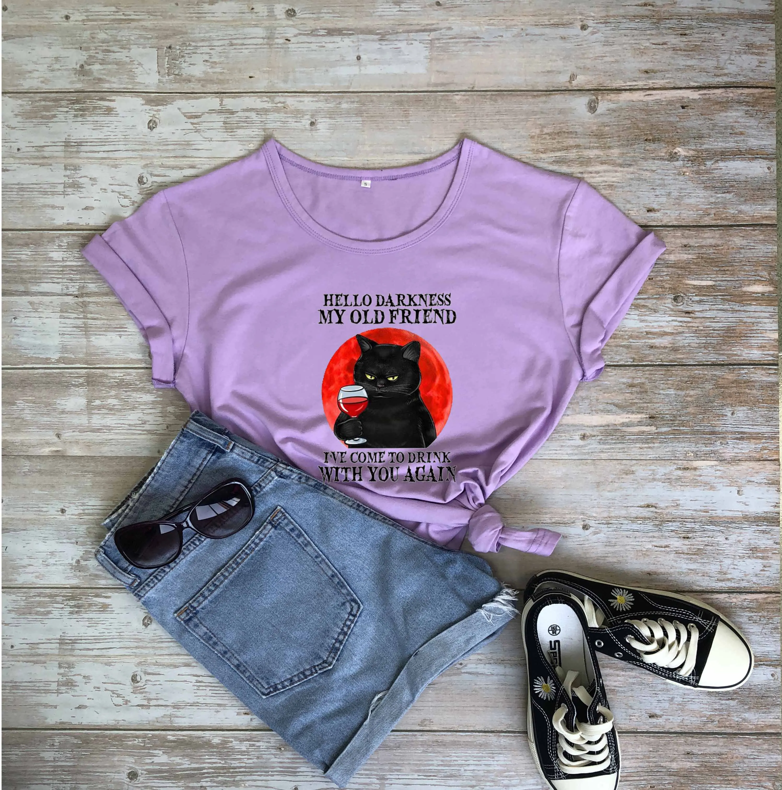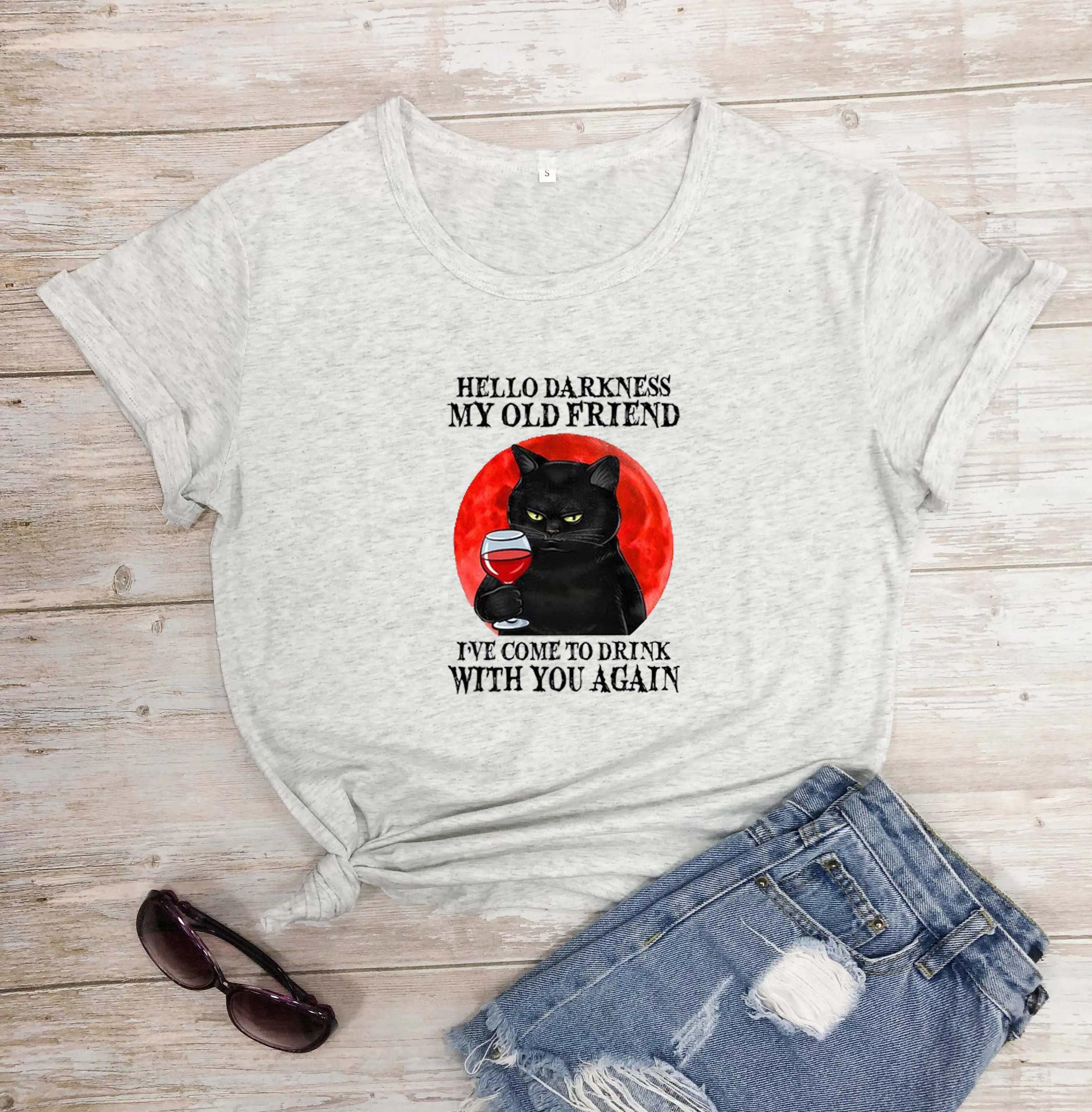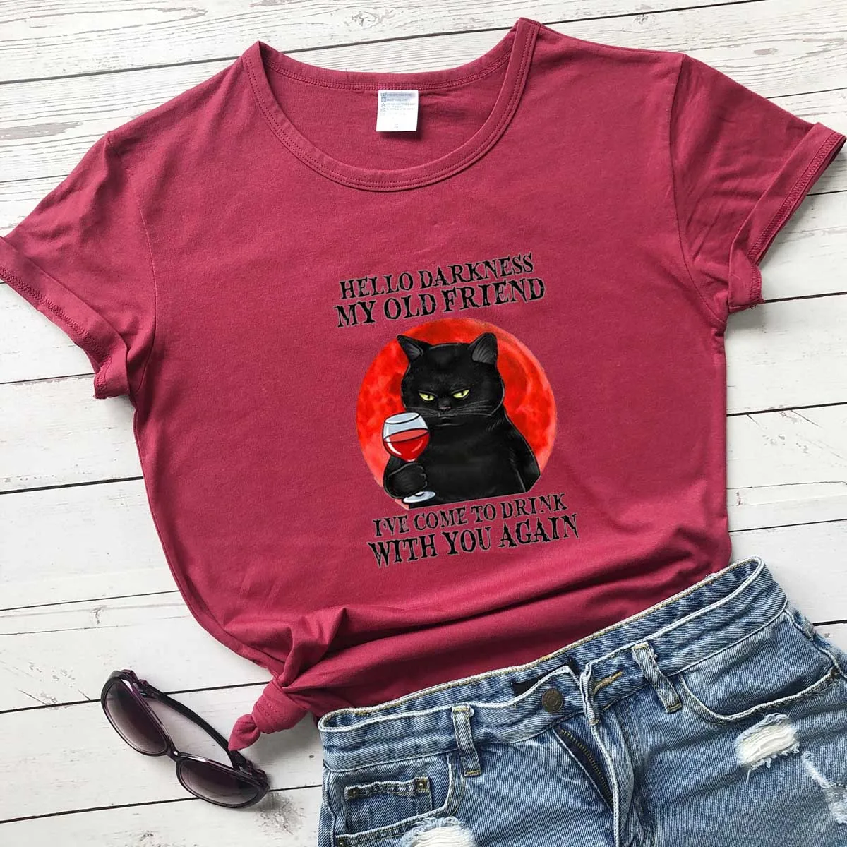 Здравствуйте, темнота, мой старый друг, я снова покупаю с вами, футболка с рисунком кошки, женские модные готические футболки унисекс, топы Вечерние