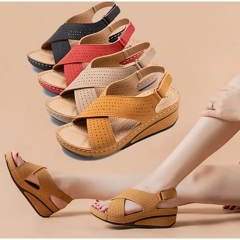 Женские босоножки в стиле ретро, летние мягкие строченные сандалии ...