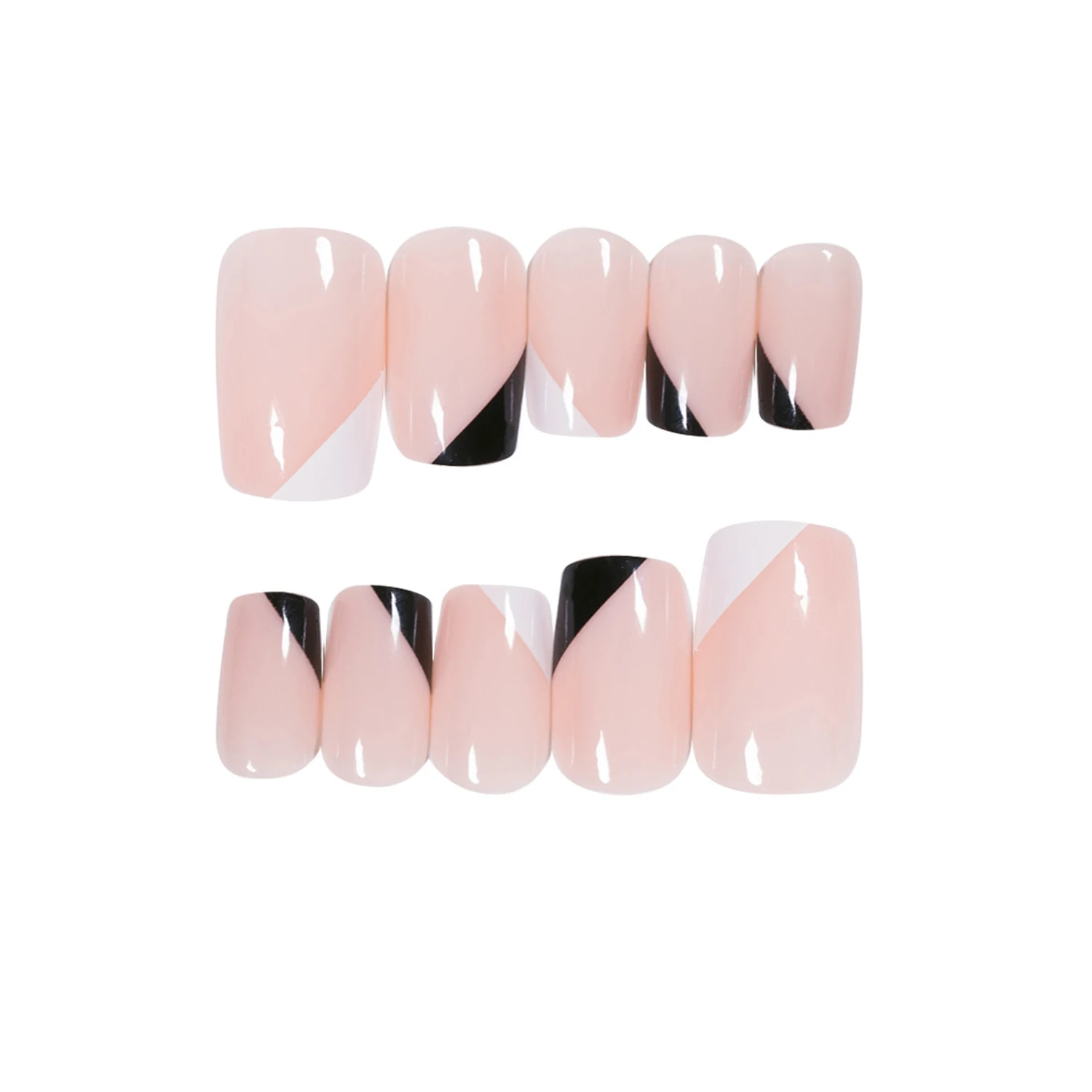 Накладные ногти в американском стиле, чистый цвет с черным V-образн...