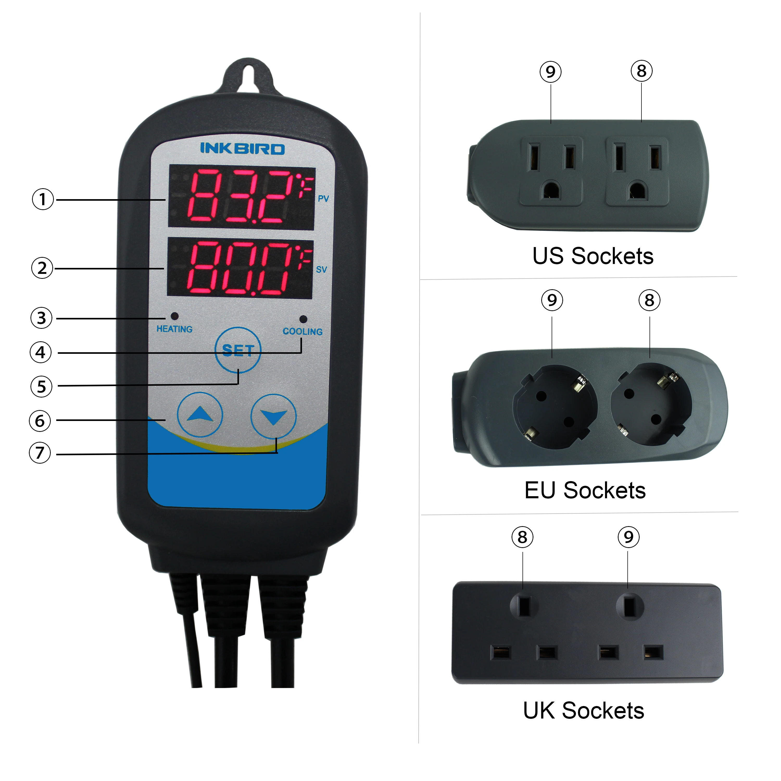 ✔Режим контроля температуры:Управление ВКЛ/ВЫКЛ. Обратите внимание, что это только нагревательный контроллер без функции охлаждения. Обе вилки могут управлять нагревом. Но не более 1200 Вт.