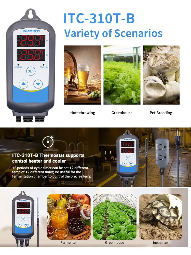 INKBIRD двойного назначения реле Термостат 220V IBT-306T (без охлаждения управления) цифровая настройка дневного и ночного двухчасового цикла в течение 24 часов и IBT-310T-B 12 температурных режимов в 12 периодов нагрева и охлаждения цифровой регулятор температуры с программируемой функцией таймера