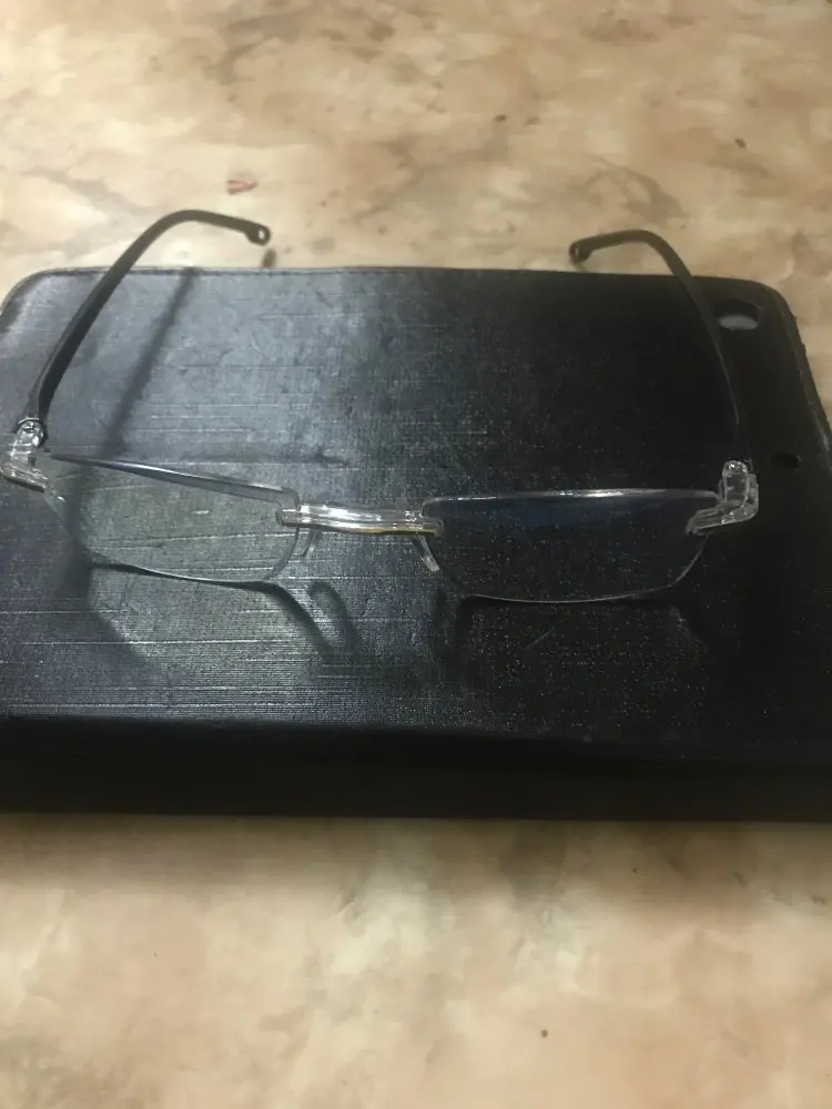 Отличные очки. Немного затемнённые. Смотрятся стильно. Жена сразу же забрала себе, хотя у нее стеклянные. Эти пластмассовые. Рекомендую!