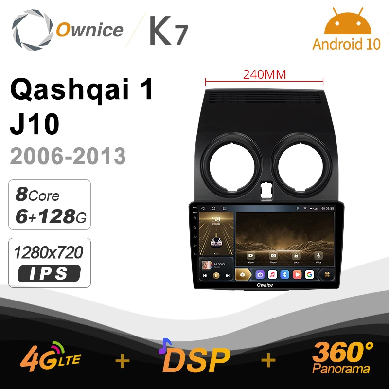 Автомагнитола K7 Ownice, стерео-система на Android 128, 6 ГБ ОЗУ, 10,0 Гб ПЗУ, для Nissan Qashqai 1 J10 2006-2013, с панорамной оптикой, 360