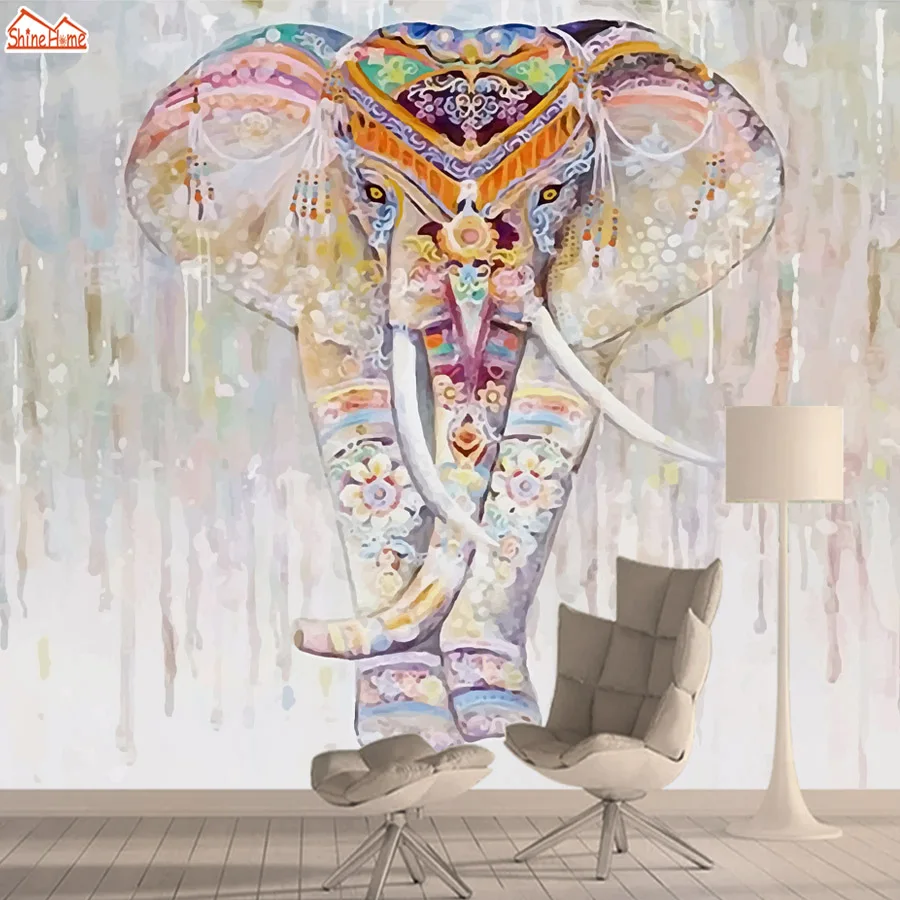 Современная самоклеящаяся бумажная настенная бумага 3d в виде слона для спальни, стен, настенная бумага, домашний декор, полосатая пленка и наклейка, фрески