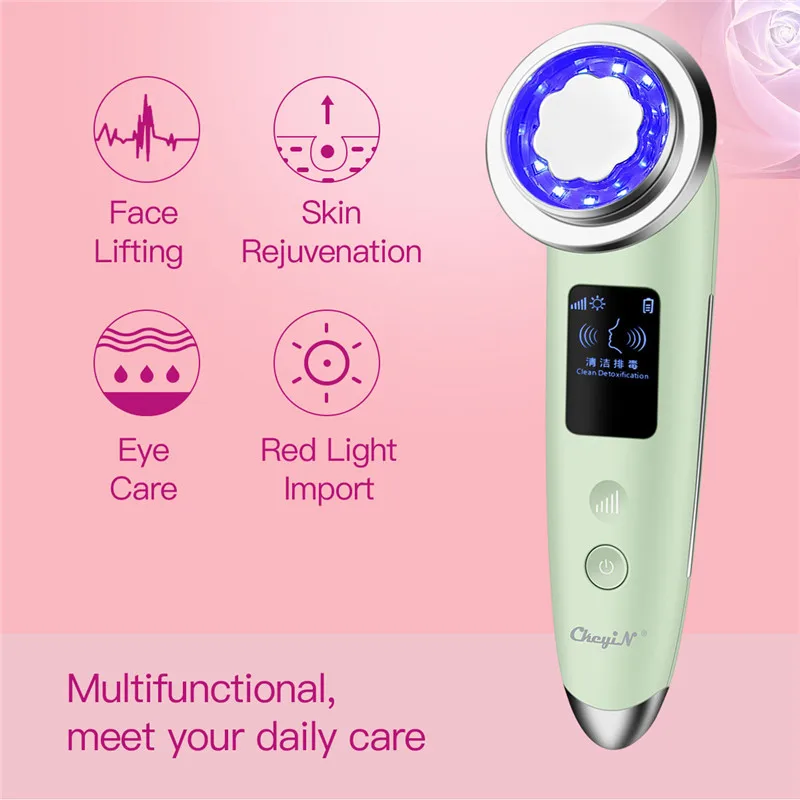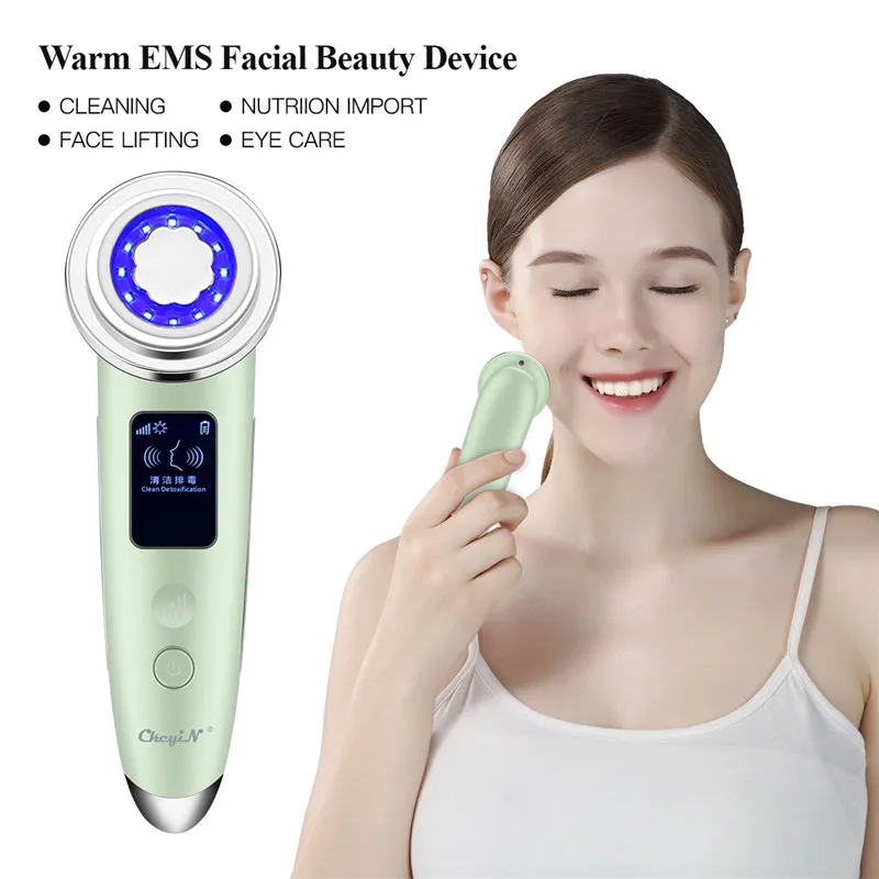 EMS LED светотерапия уход за кожей + Ультразвуковой скруббер для кожи + электрическое средство для удаления черных точек + нано спрей Пароварка для лица