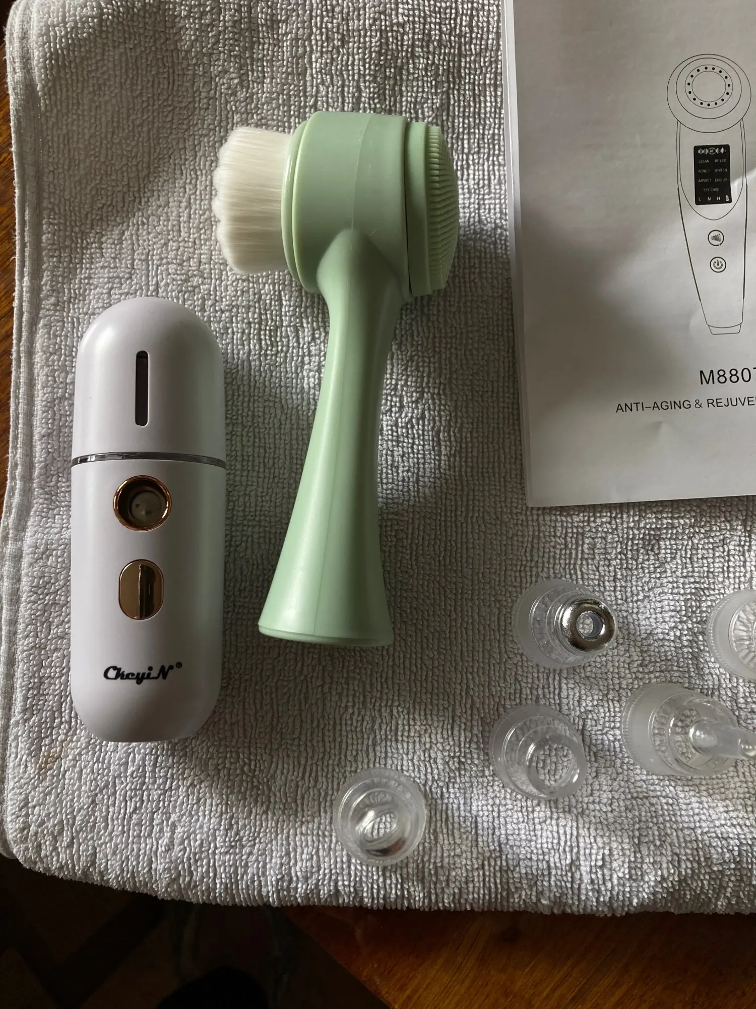 Артикул: MR540Особенности:1. Обновите чип распыления, распыление тонче, чем частицы основы, которые могут легко проникать в макияж и проникать в дно кожи.2. Большой объем распыления, мощный и более удобный. Большой диапазон распыления.3. С большой насадкой, вы можете добавить воду просто аккуратно повернуть крышку резервуара для воды против часовой стрелки, что удобно и быстро добавить воду.4. Спрей в течение 5 минут, чтобы сохранить кожу полной и увлажненной в любое время.5. Видимый резервуар для воды, четко знать оставющийся объем воды.6. Одноклавишный переключатель, простой и быстрый.7. Мини портативный, легко носить с собой.Спецификация:Материал: АБС-пластикМощность: 0,6 WРабочее напряжение: DC3.7VНапряжение при зарядке: DC5VЕмкость аккумулятора: 180 мА · чЕмкость резервуара для воды: 12 млВремя распыления: резервуар для воды может быть заполнен водой и может распыляться непрерывно в течение 5 минутВремя зарядки: около 40 минутВремя использования: около 40 минутДлина сетевого шнура: 16 см ± 2 смСодержимое упаковки:Нано-пароварка для лица * 1Кабель USB * 1
