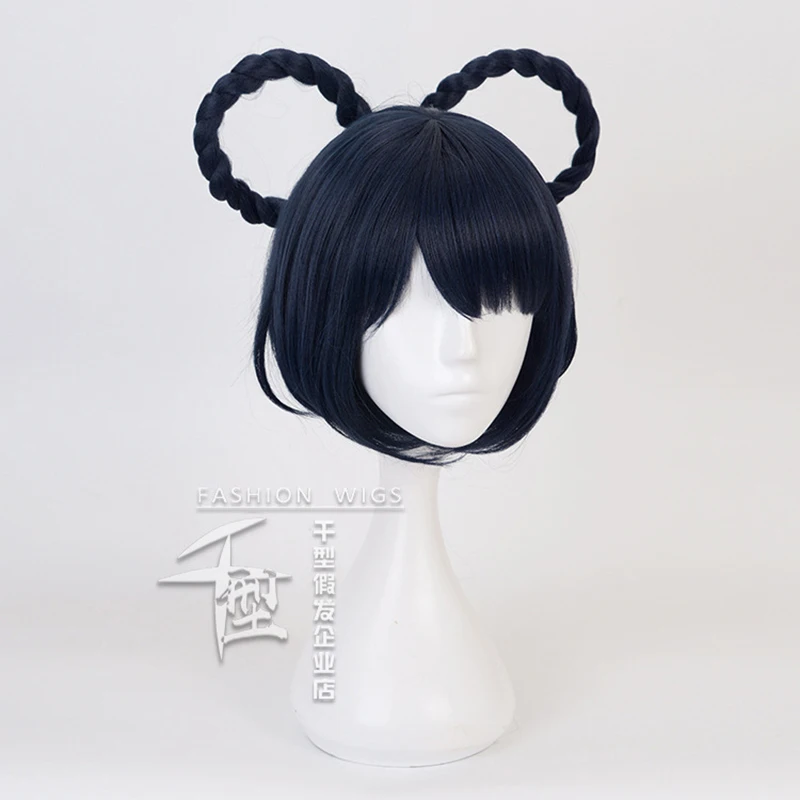 Парик с короткой косичкой Game Genshin Impact Xiangling, темно-сини...