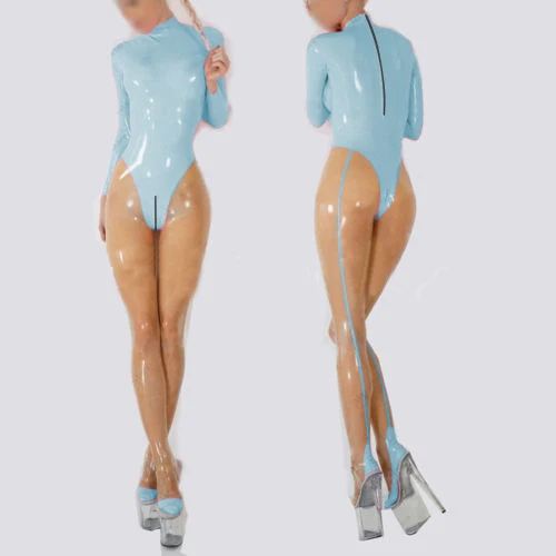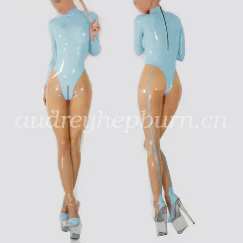 Латексный резиновый женский Боди Колготки Catsuit светильник-голубой и прозрачный костюм S-XXL