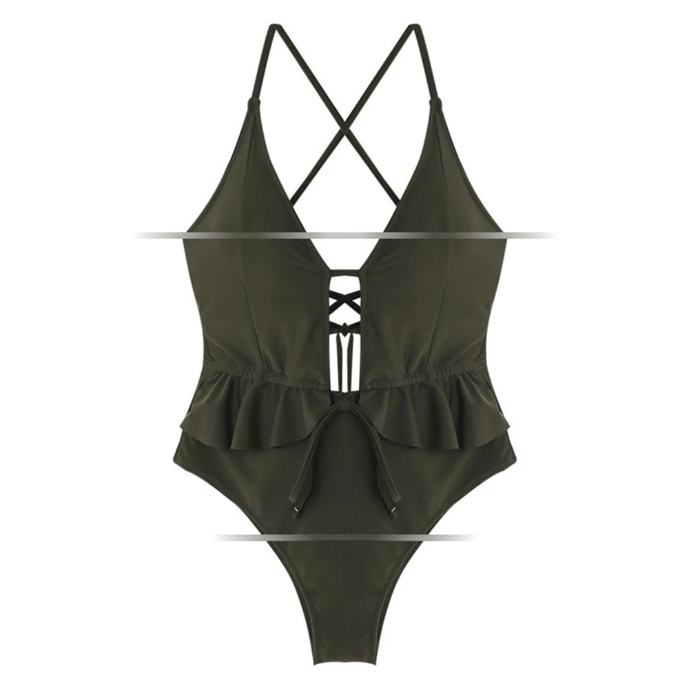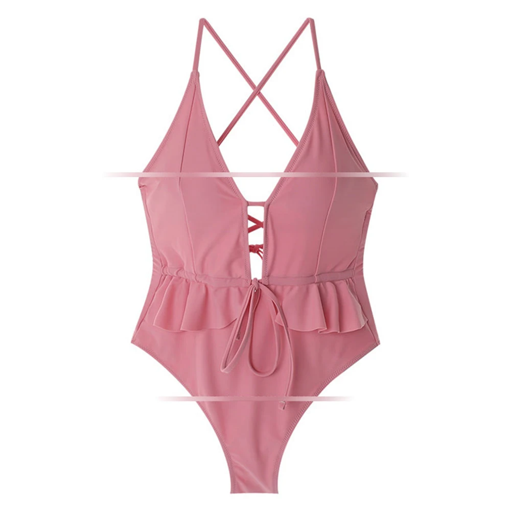 Цельный купальный костюм в Корейском стиле, Женская однотонная одежда для плавания, монокини с оборками, бандажный купальный костюм, трикини с открытой спиной, купальный костюм, сексуальный вырез