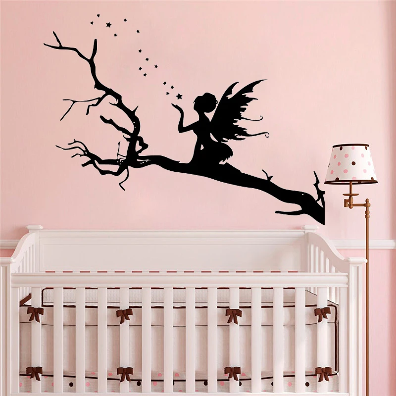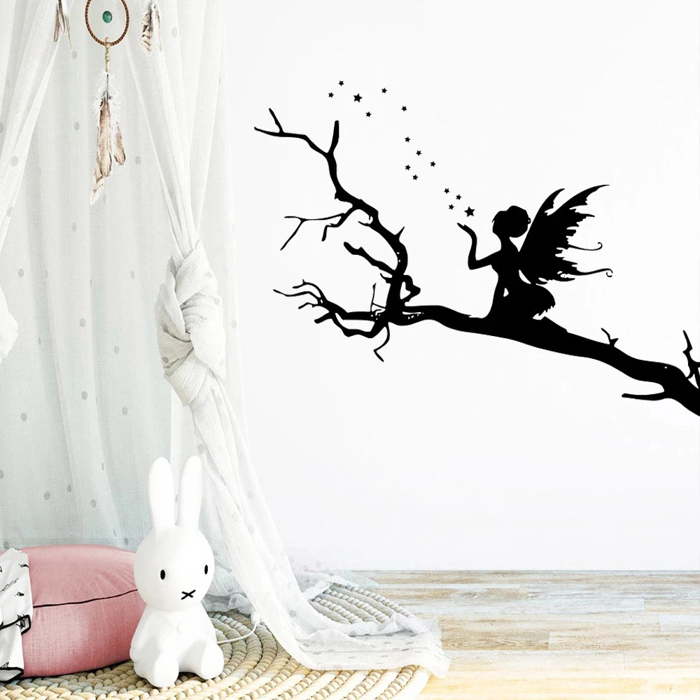 Виниловые наклейки на стену с изображением ангела и сказочных звезд