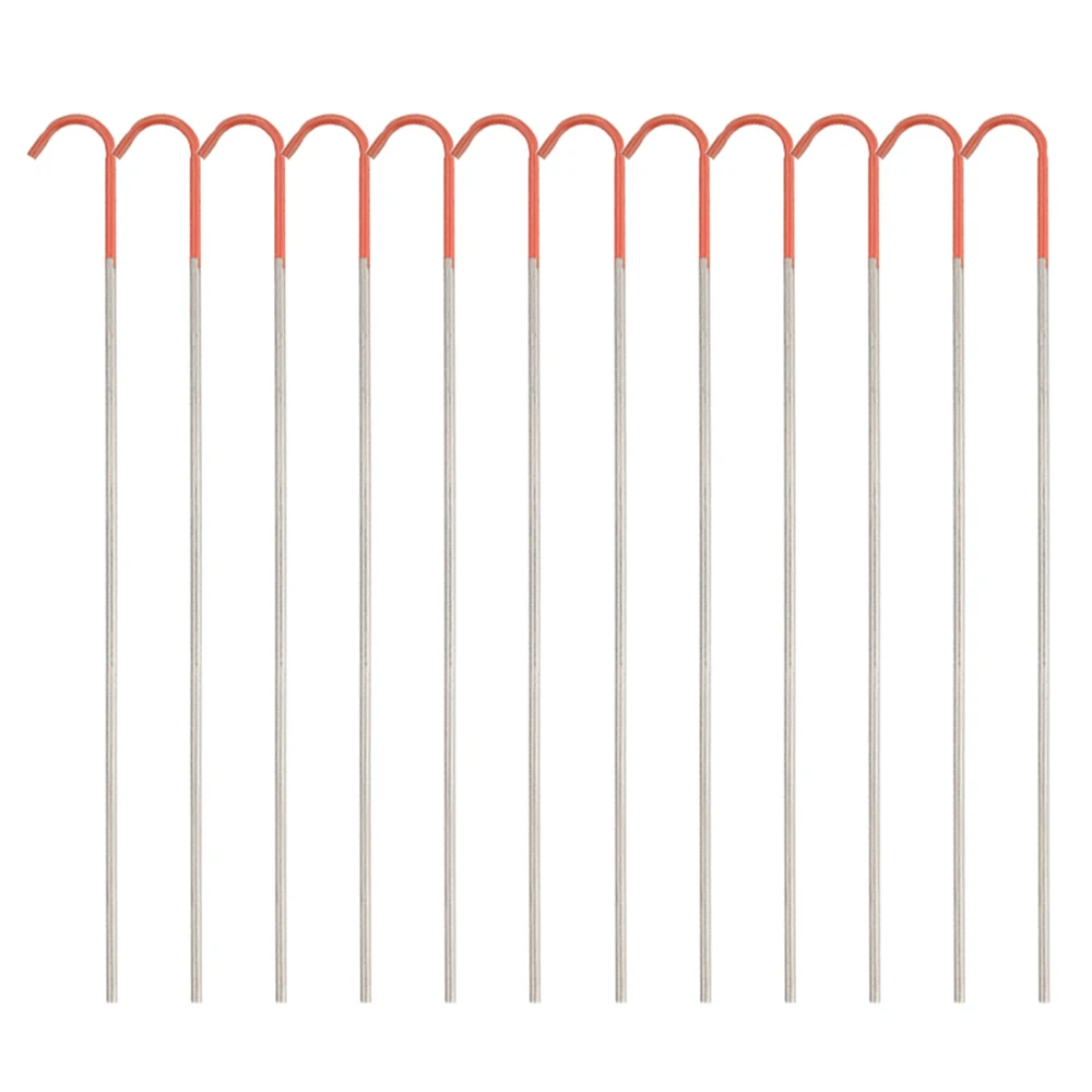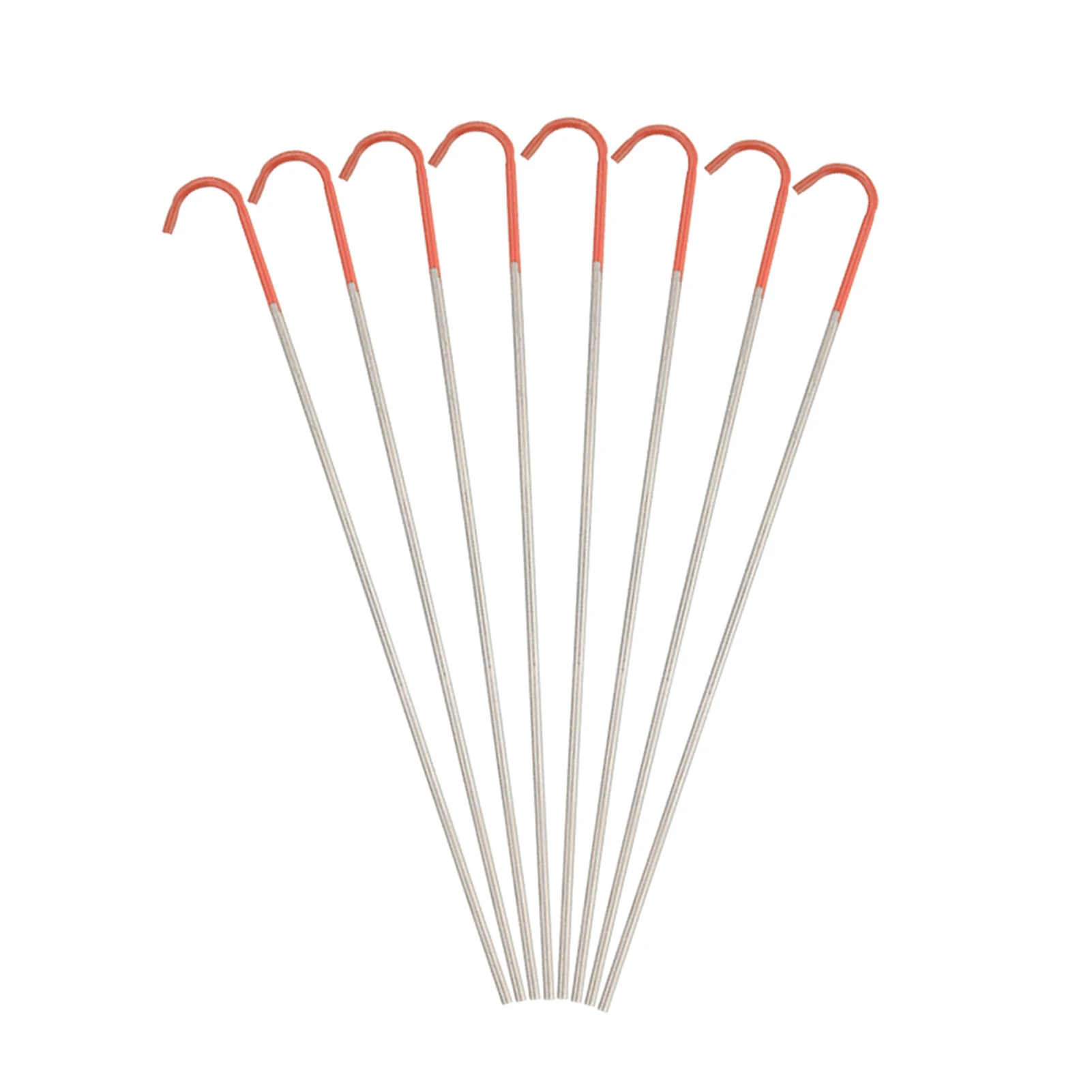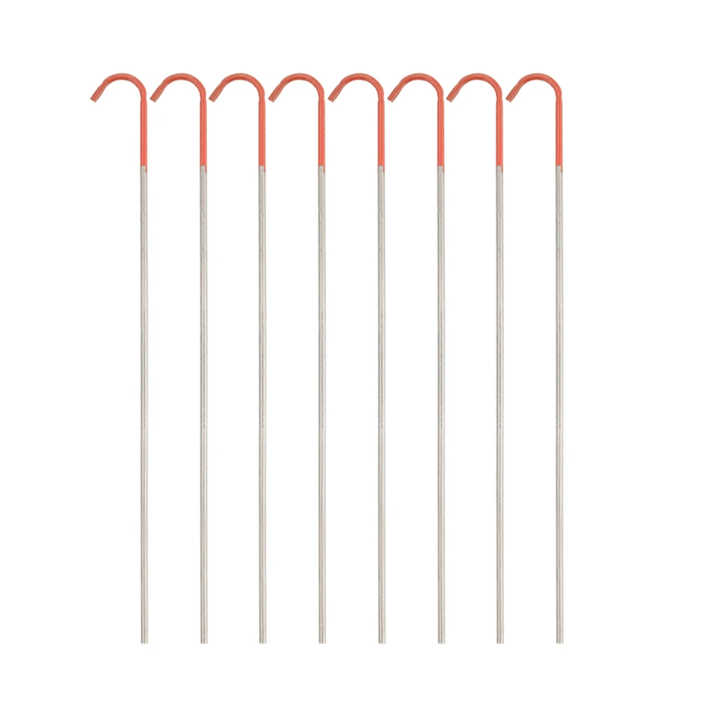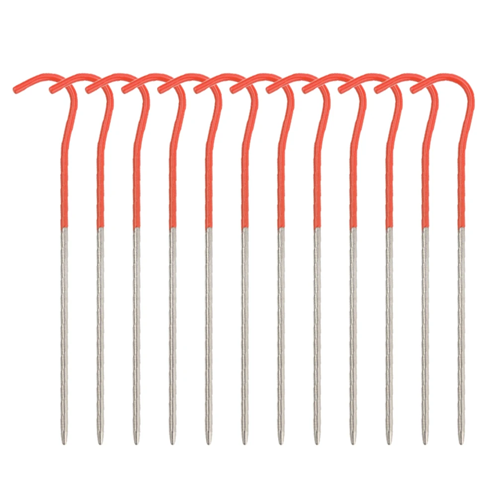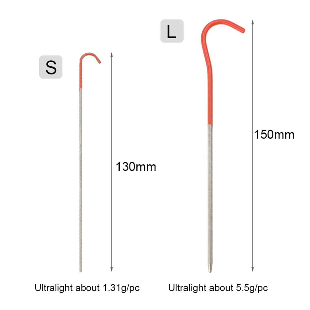 Особенности: Изготовлен из титанового сплава, высокопрочный и сверхлегкий. Конические наконечники легко прилегают к почве. Благодаря конструкции крючка колышка легко вытащить. Оранжевое покрытие обеспечивает хорошую видимость. Отличный аксессуар, стабилизирующий вашу палатку. Характеристики: Материал: титановый сплав Размер: S: φ 2*130 мм; Вес: 1,31 г L: φ 3*150 мм; Вес: 5,5 г Посылка тация: 8 * колышек для палатки/12 * колышек для палатки