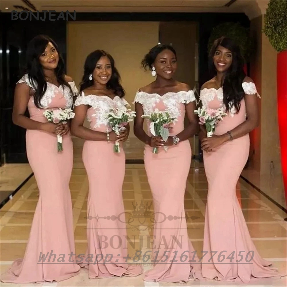 Розовый платье подружки невесты es 2021 Русалка Кружева Аппликация из эластичной ткани в африканском стиле; Платье подружки невесты размера плюс для женщин на свадьбу
