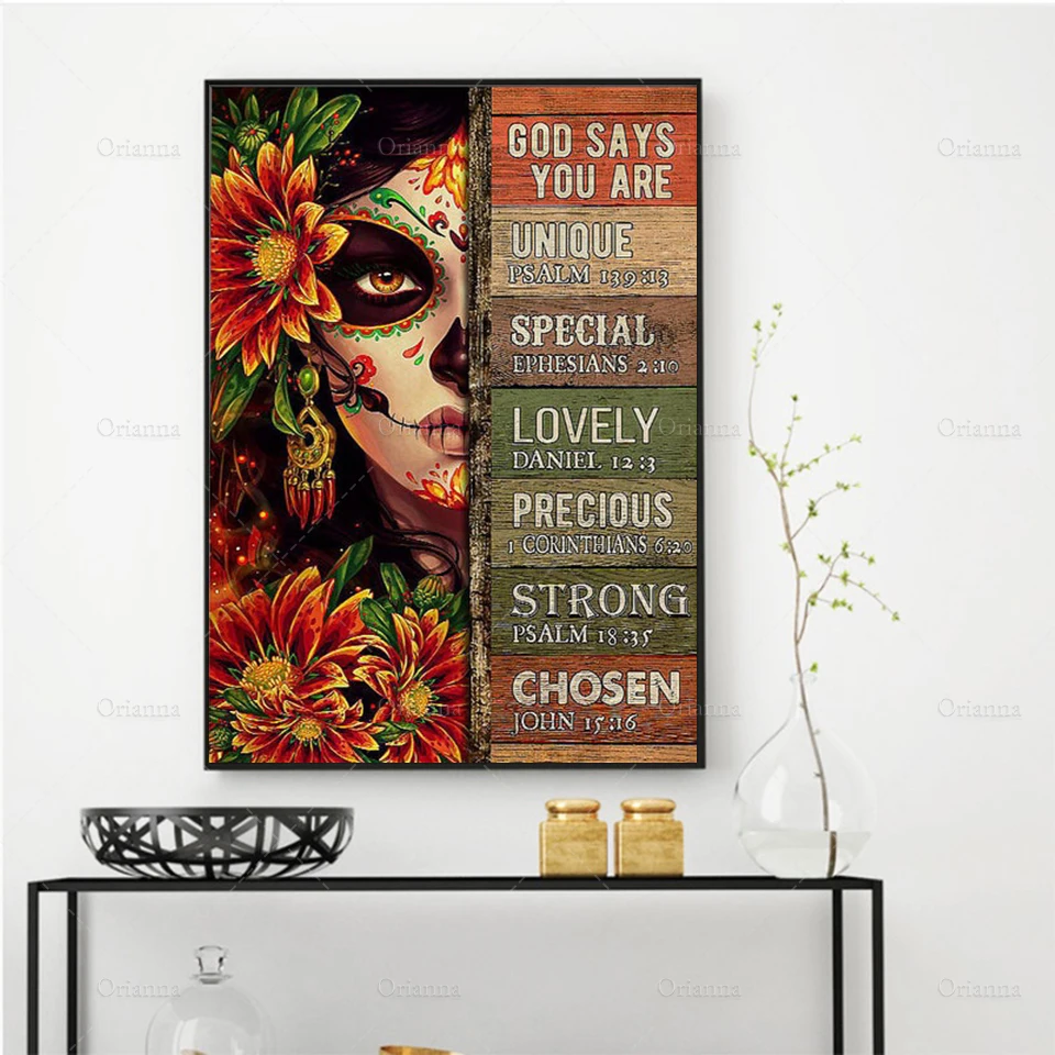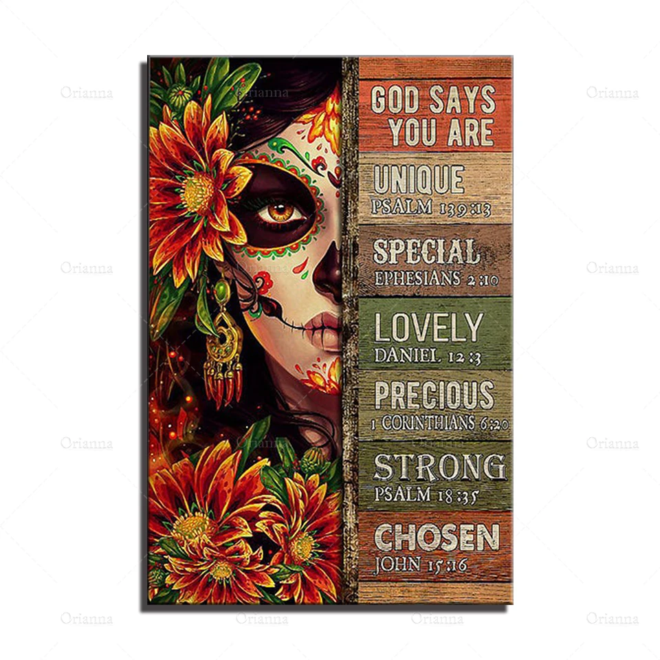 SubjectsGod Says You Are Unique Special Lovely Sugar Skull Art,