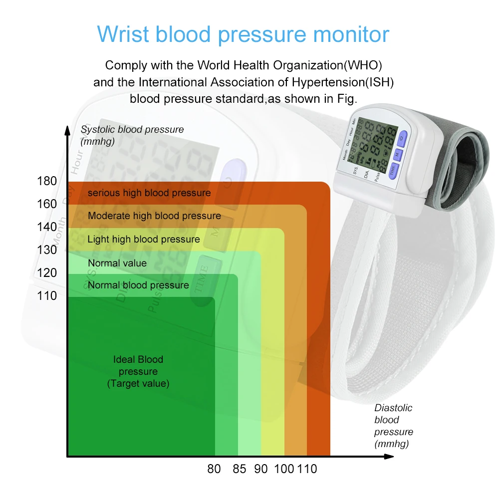 Медицинский цифровой наручный тонометр, автоматический тонометр, измерение артериального давления