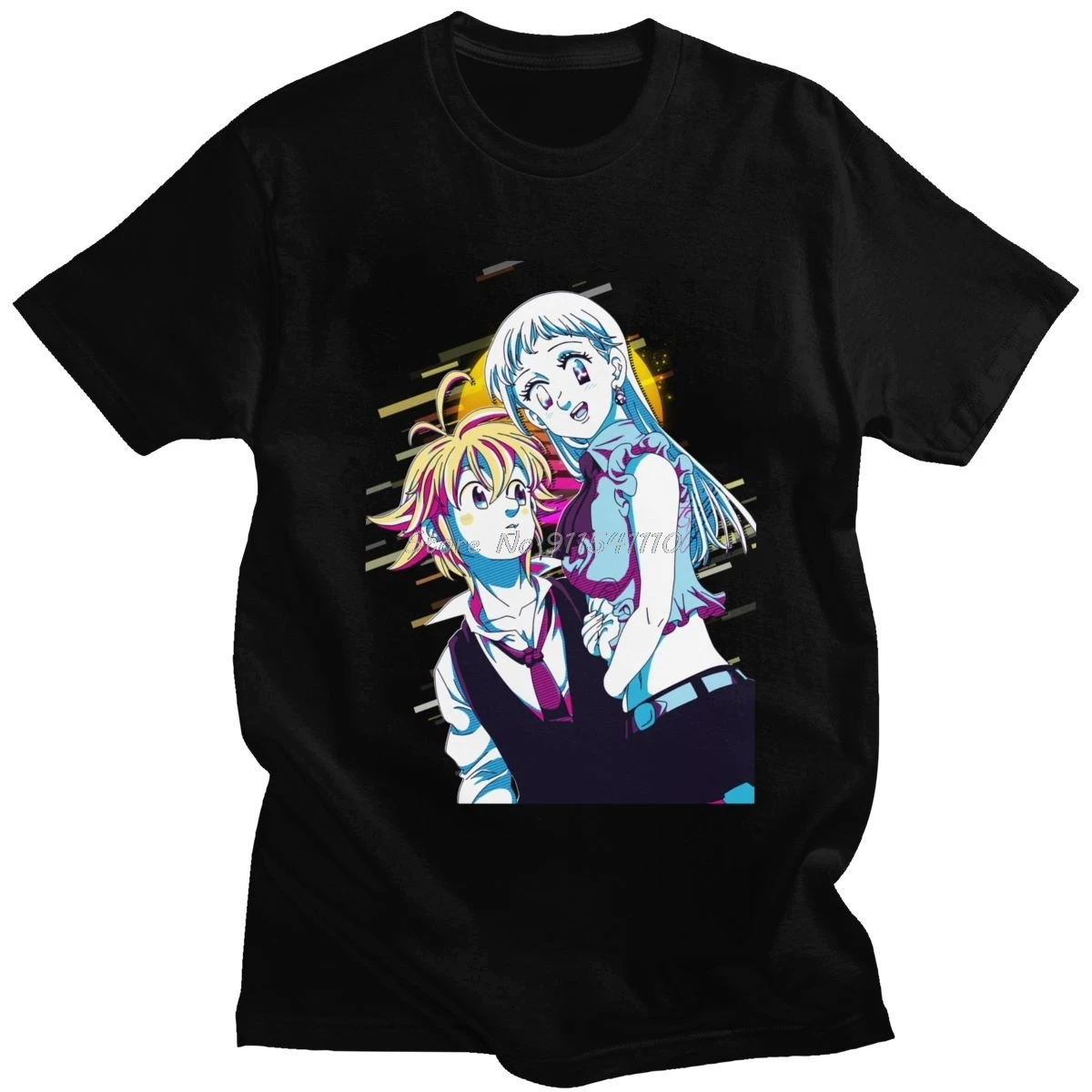 Футболка мужская хлопковая с коротким рукавом, японская рубашка с принтом манга, семь смертных грехов, мелиодас, Элизабет