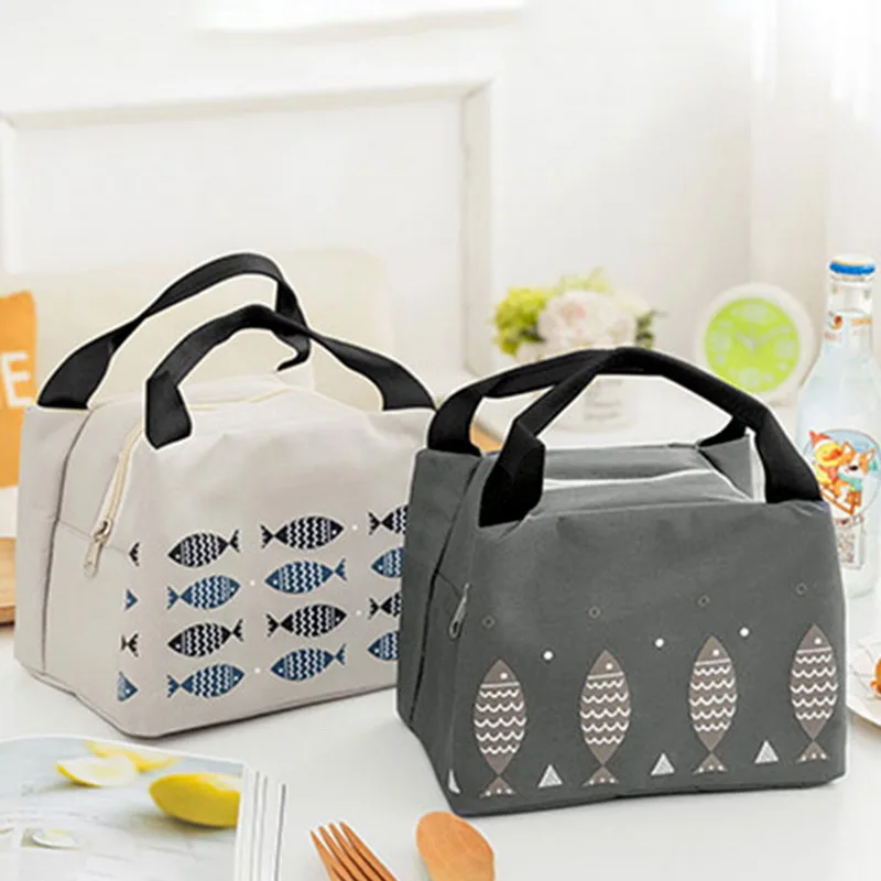 Симпатичная холщовая водонепроницаемая сумка для ланча с рыбками, Ж...