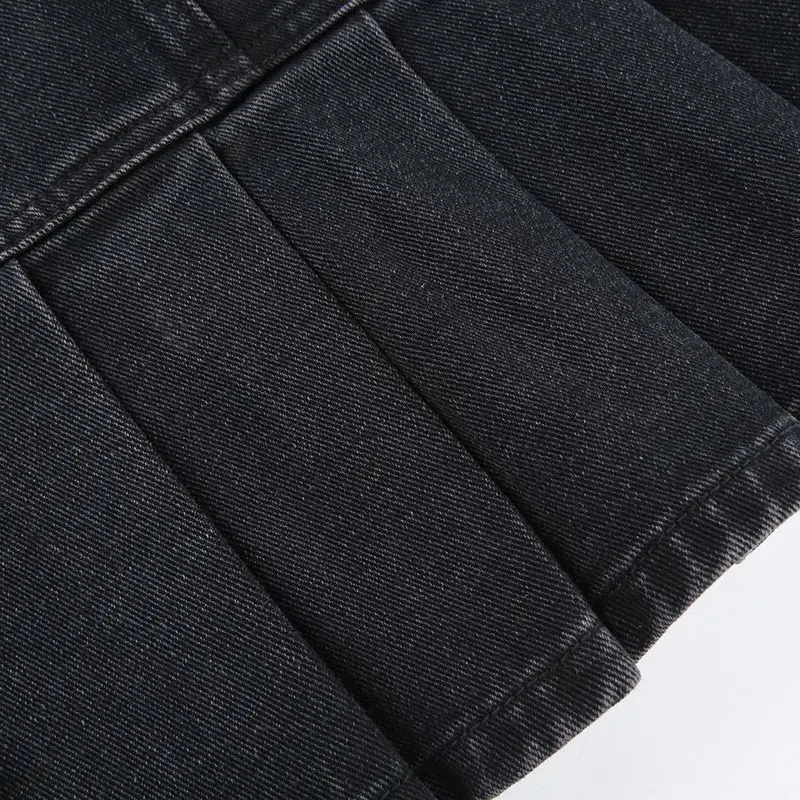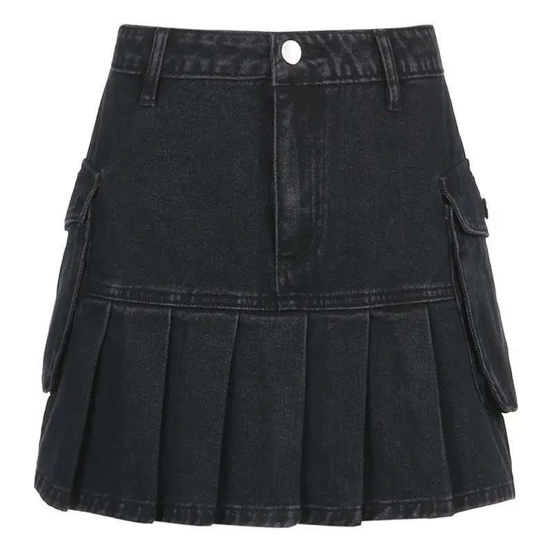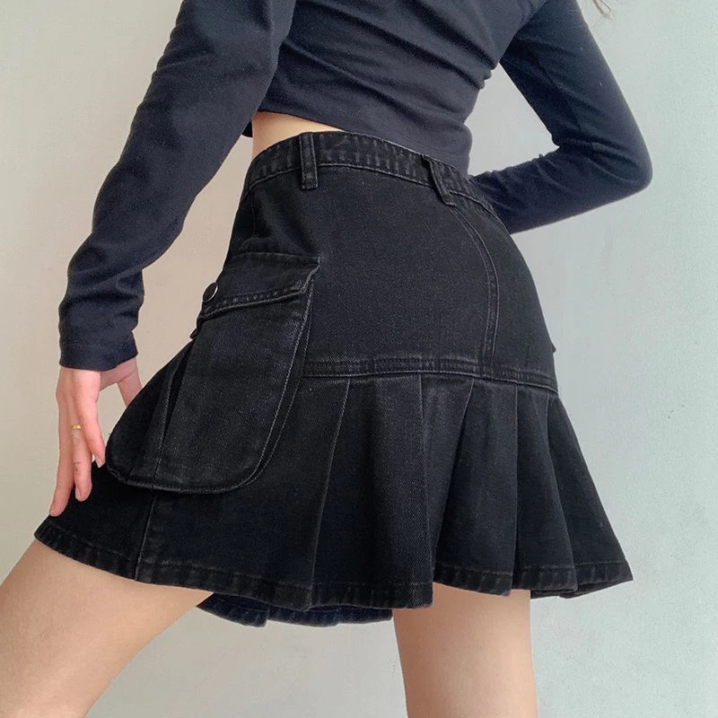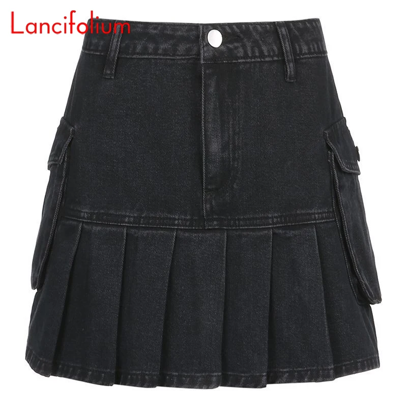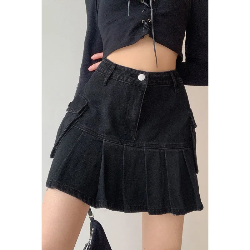 Женская плиссированная джинсовая юбка, черная мини-юбка с высокой талией, в готическом стиле, Y2k, в Корейском стиле, весна-лето, 2021