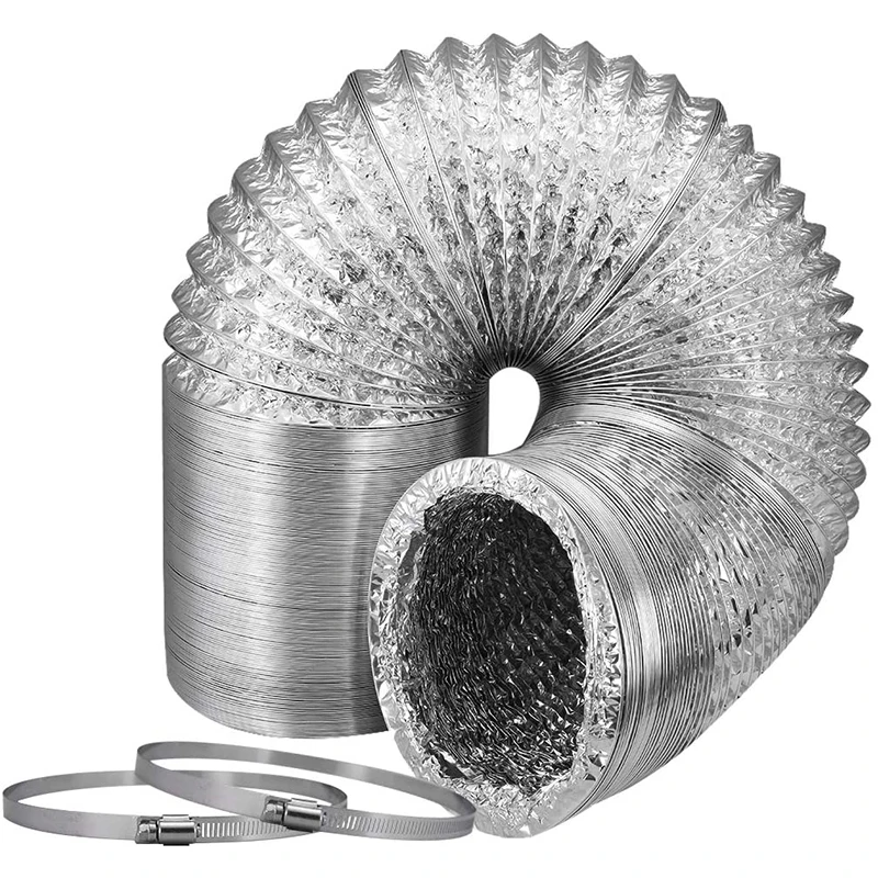Прочная, Гибкая стальная проволока поддерживает сверхпрочные трехслойные стенки воздуховодов; ПЭТ ядро зажато в слоях огнеупорного алюминия, который может обрабатывать температуры от-22 до 266 по Фаренгейту.