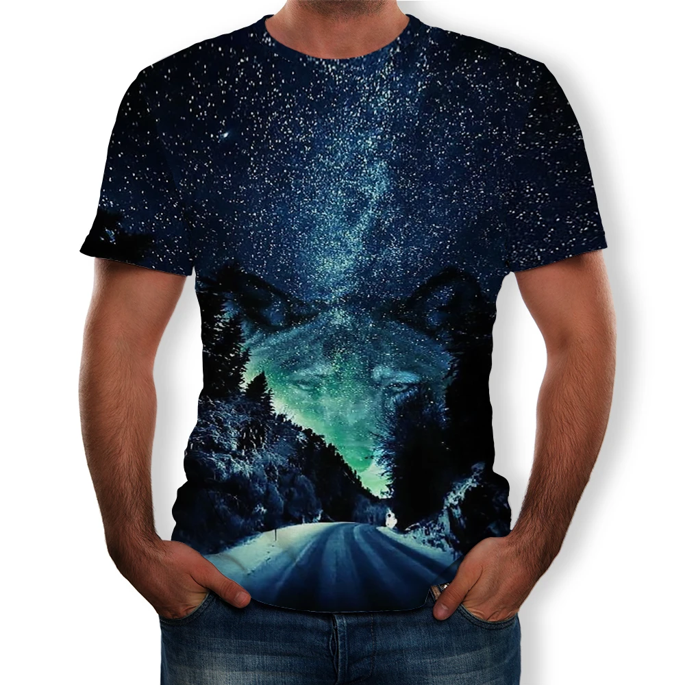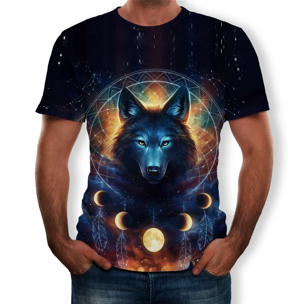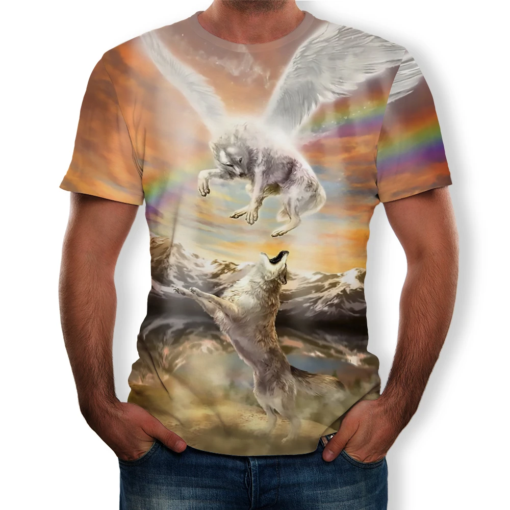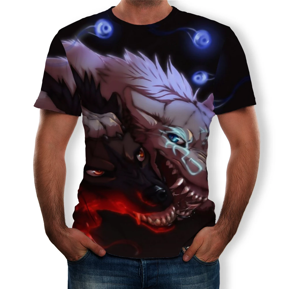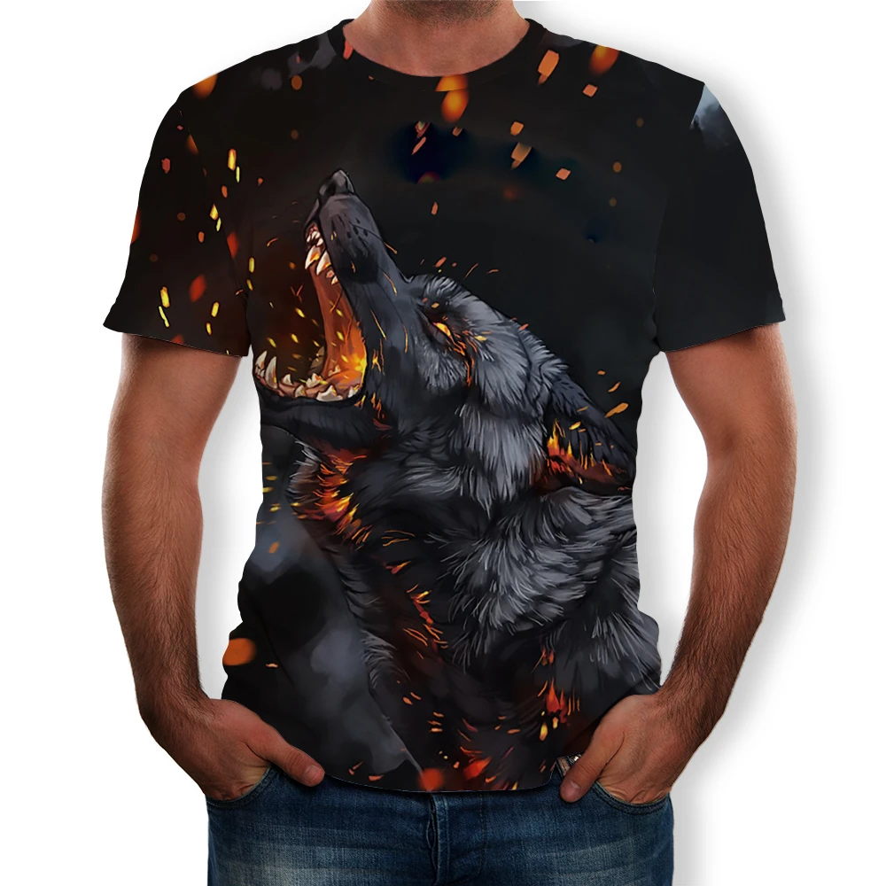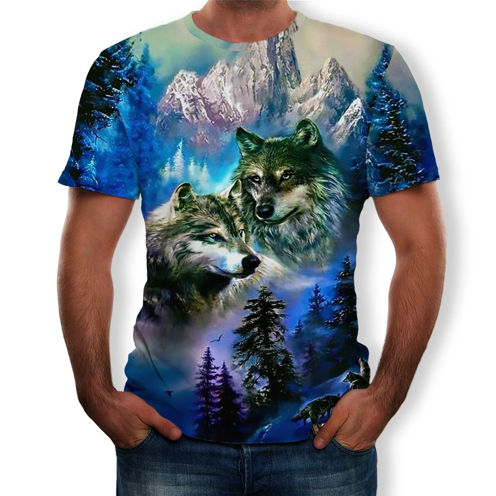 Летняя мода 2021, новинка, Мужская футболка с 3D принтом волка и Орлан, повседневный универсальный топ с коротким рукавом