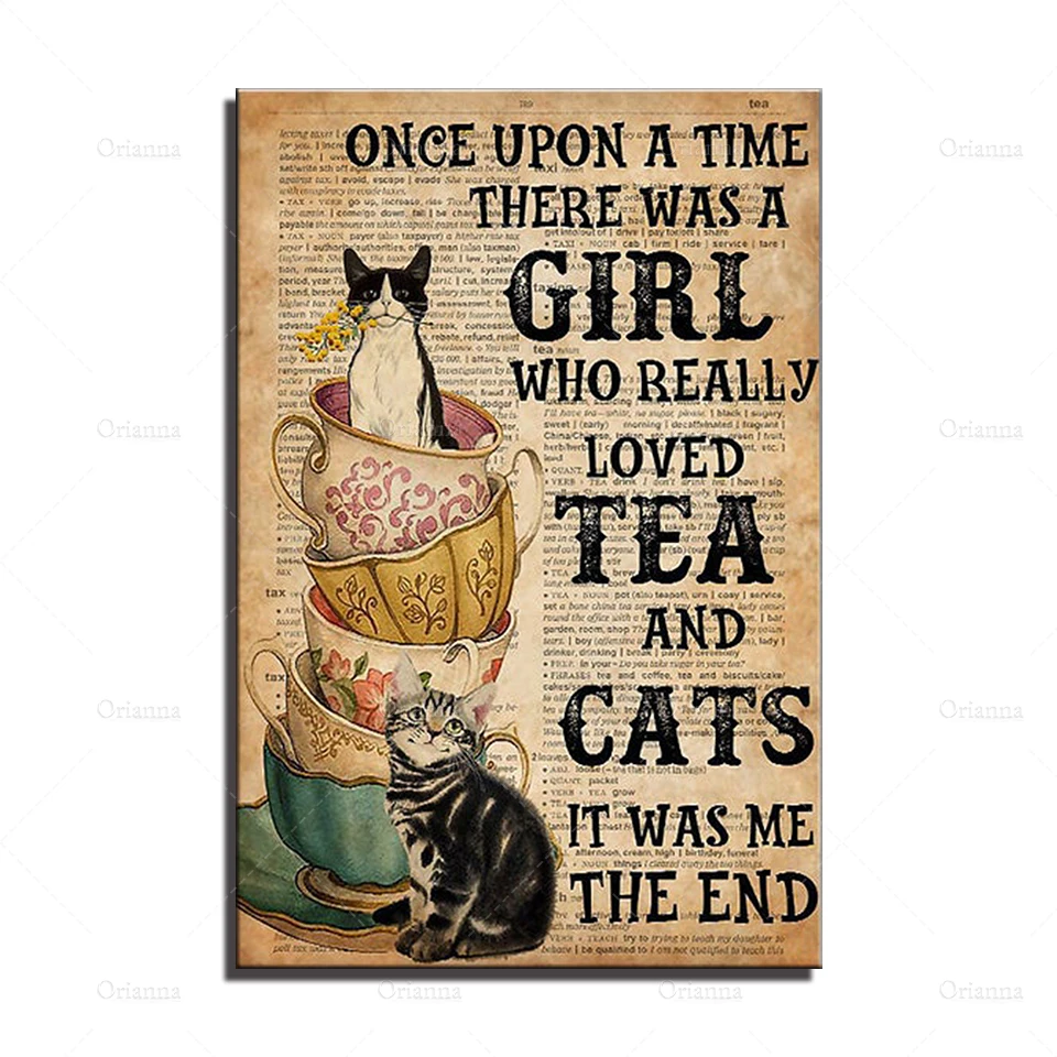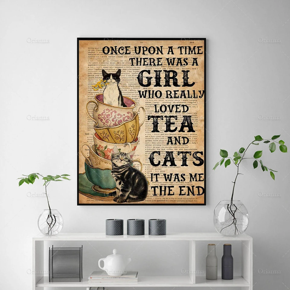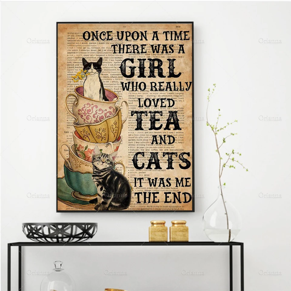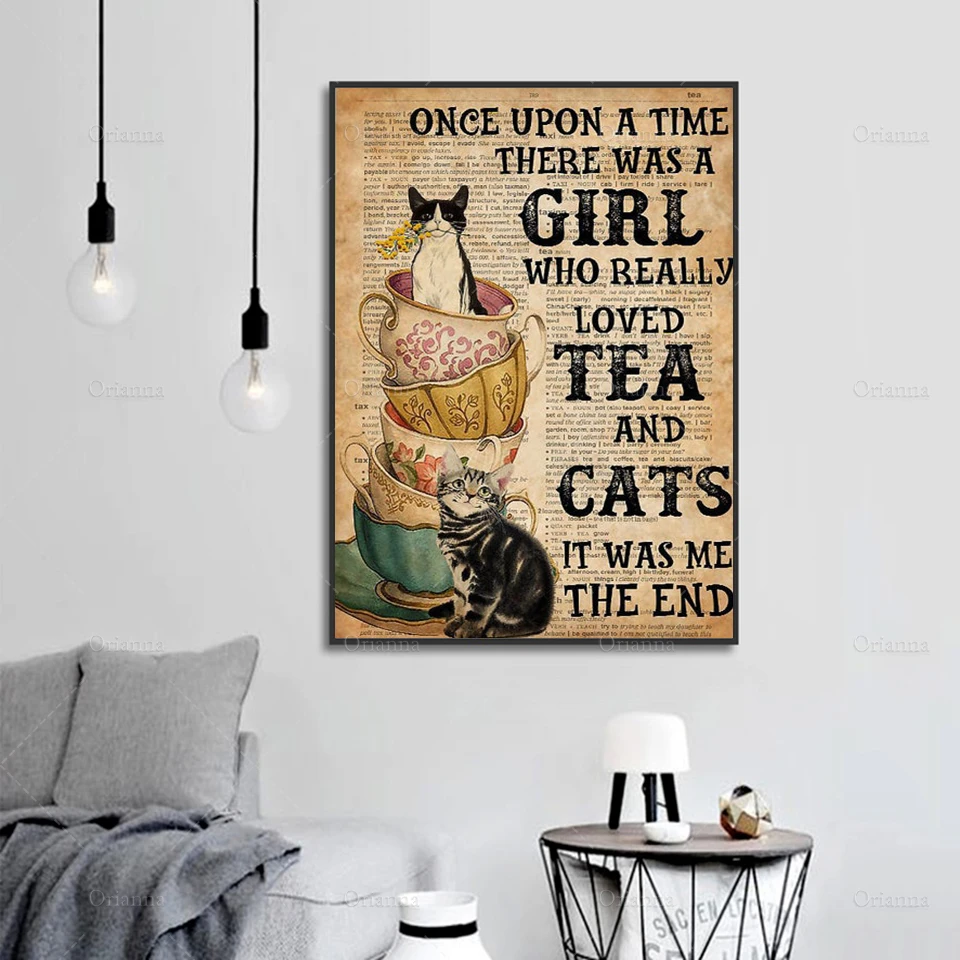 Once Upon A Time была девушка, которые очень любят Чай и плакат с кошкой из плотной ткани Кот печати Wall Art кошка пижамы для малыша подарок украшения