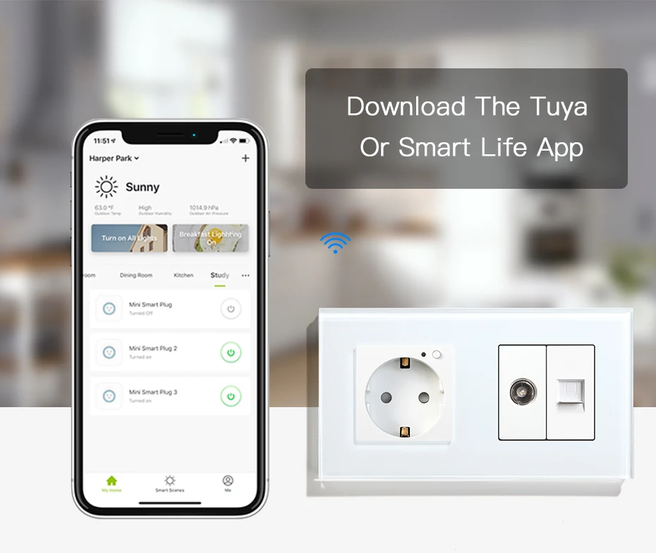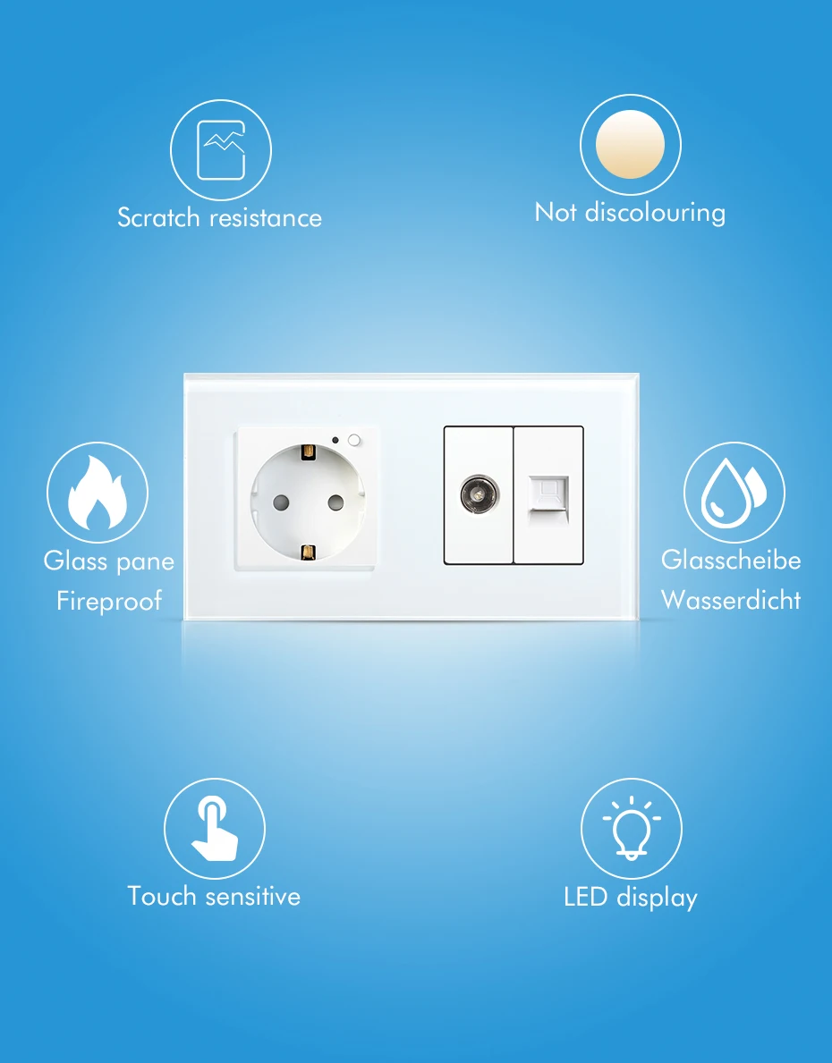 Умная настенная розетка BSEED с Wi-Fi и стандартным штекером для телевизора, ПК, прозрачная стеклянная панель, 157 мм, белая, черная, работает с Smart Life Tuya