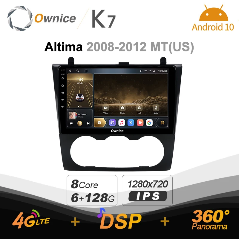 Автомагнитола Ownice K7, Android 10,0, 6 ГБ + 128 ГБ, мультимедийная система для Nissan altima 2008-2012, радиосистема 360, панорамная 4G LTE