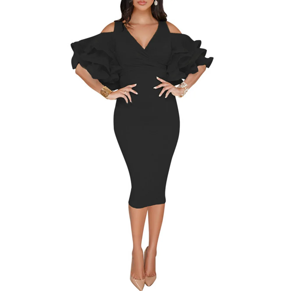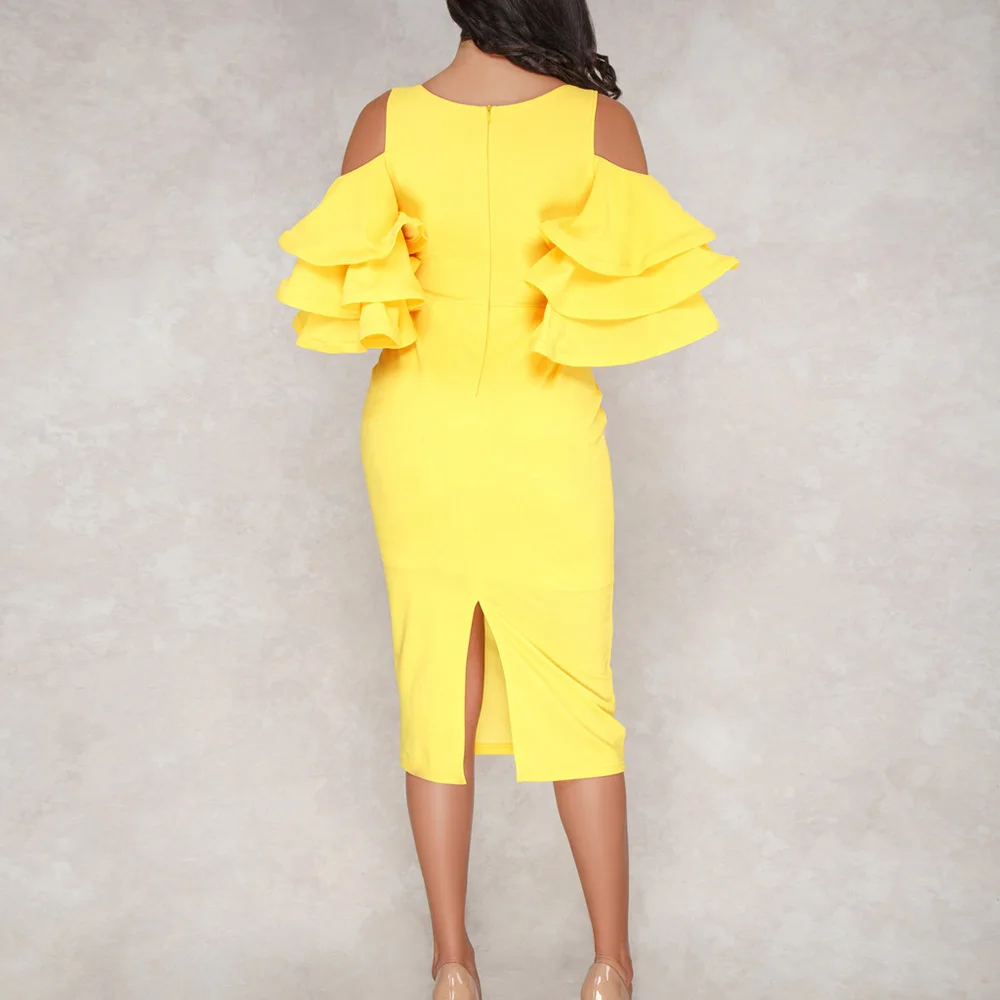 Элегантное вечернее платье для женщин 2021 сексуальное облегающее платье с рукавом в виде листа лотоса с открытыми плечами вечернее платье миди летнее желтое розовое черное офисное платье