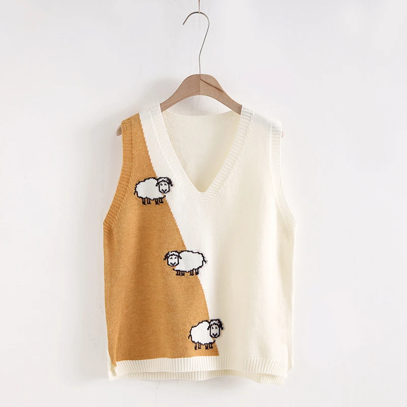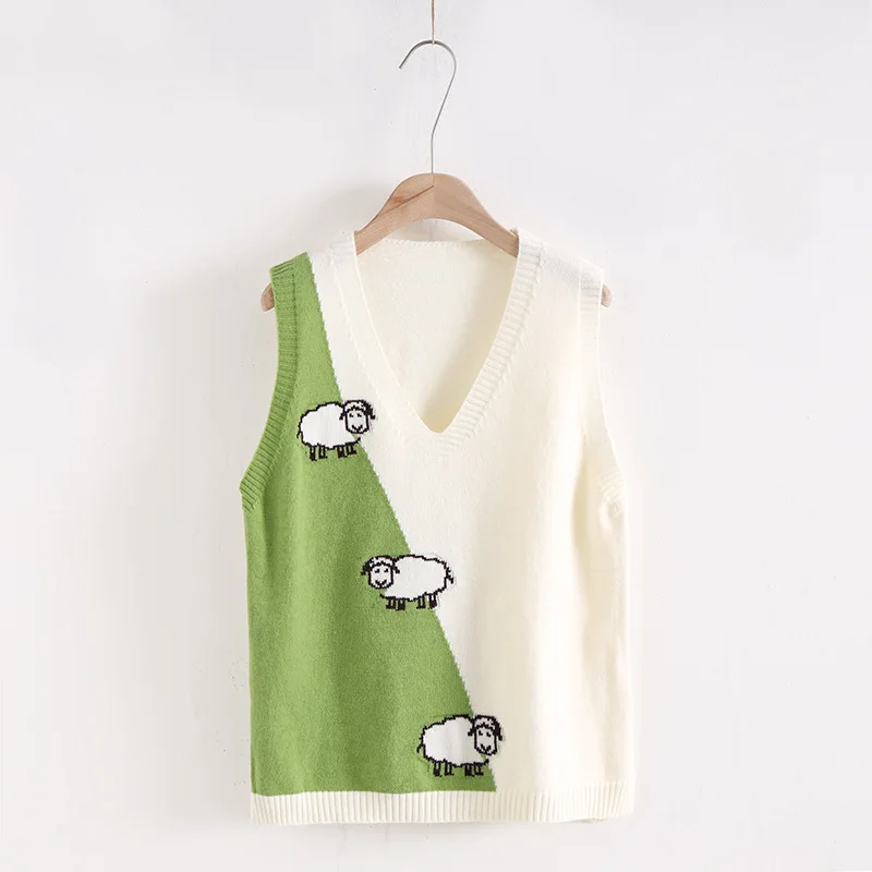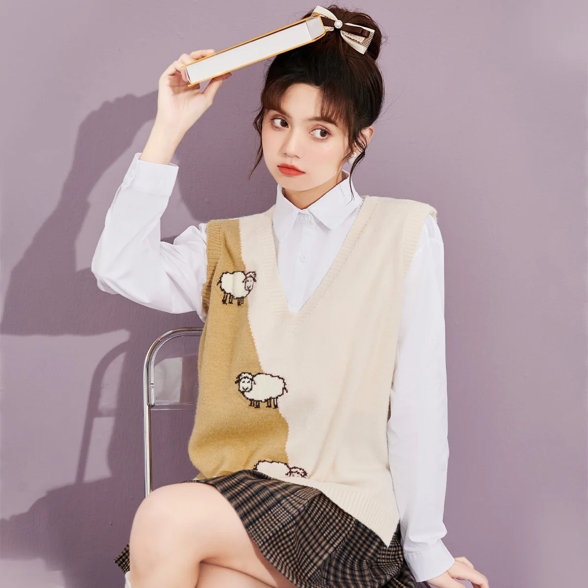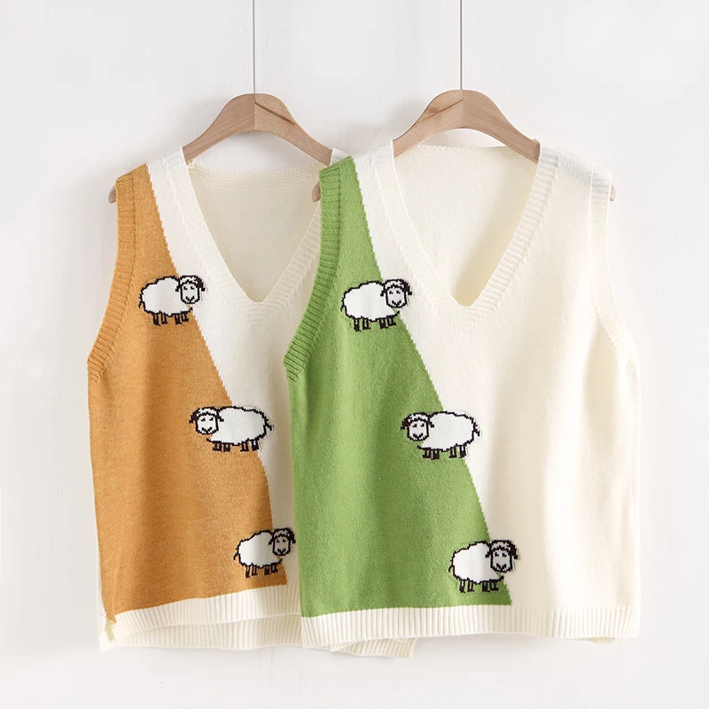 Кавайный мультяшный Женский трикотажный жилет без рукавов, топ оверсайз для студентов, верхняя одежда без рукавов, майка, весенне-осенний B-021