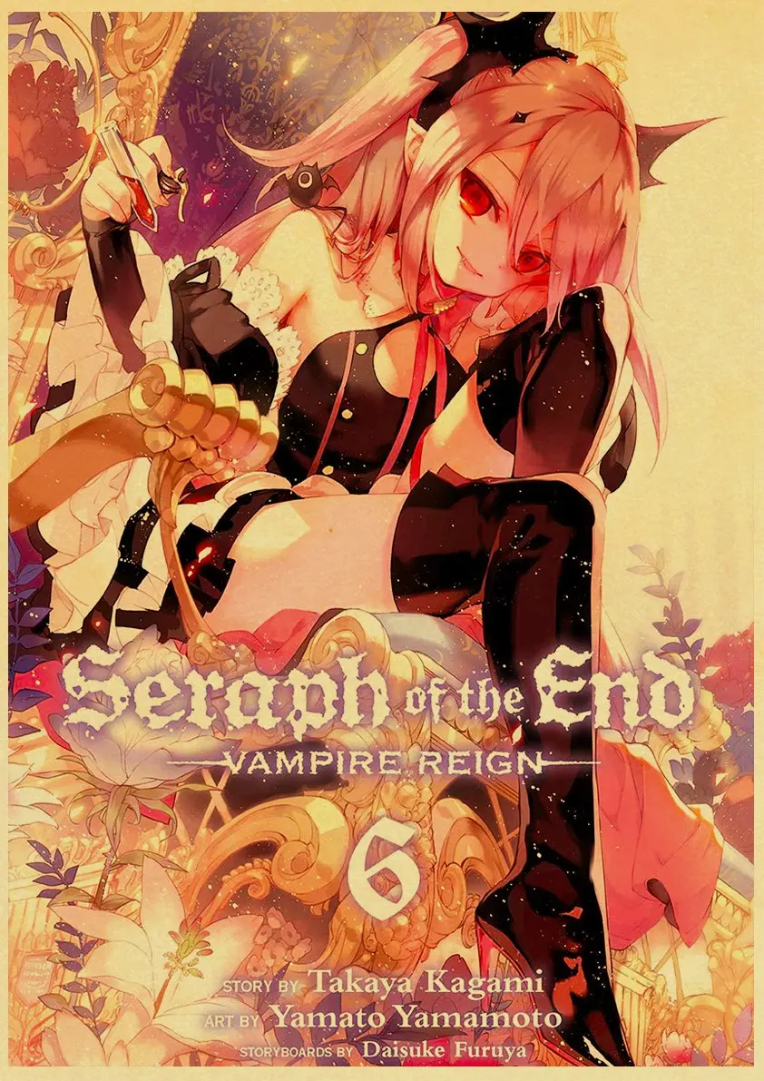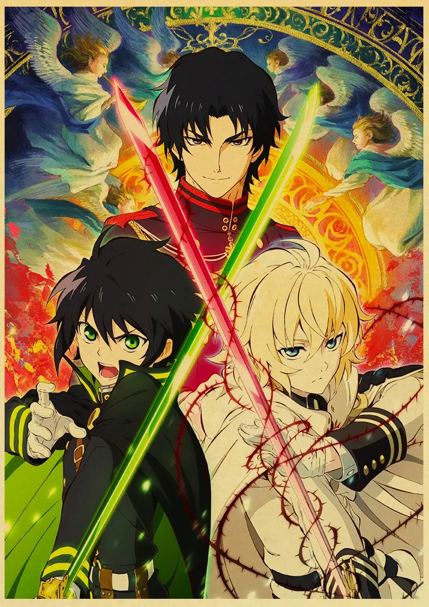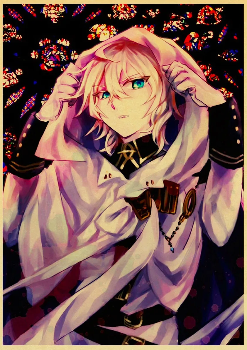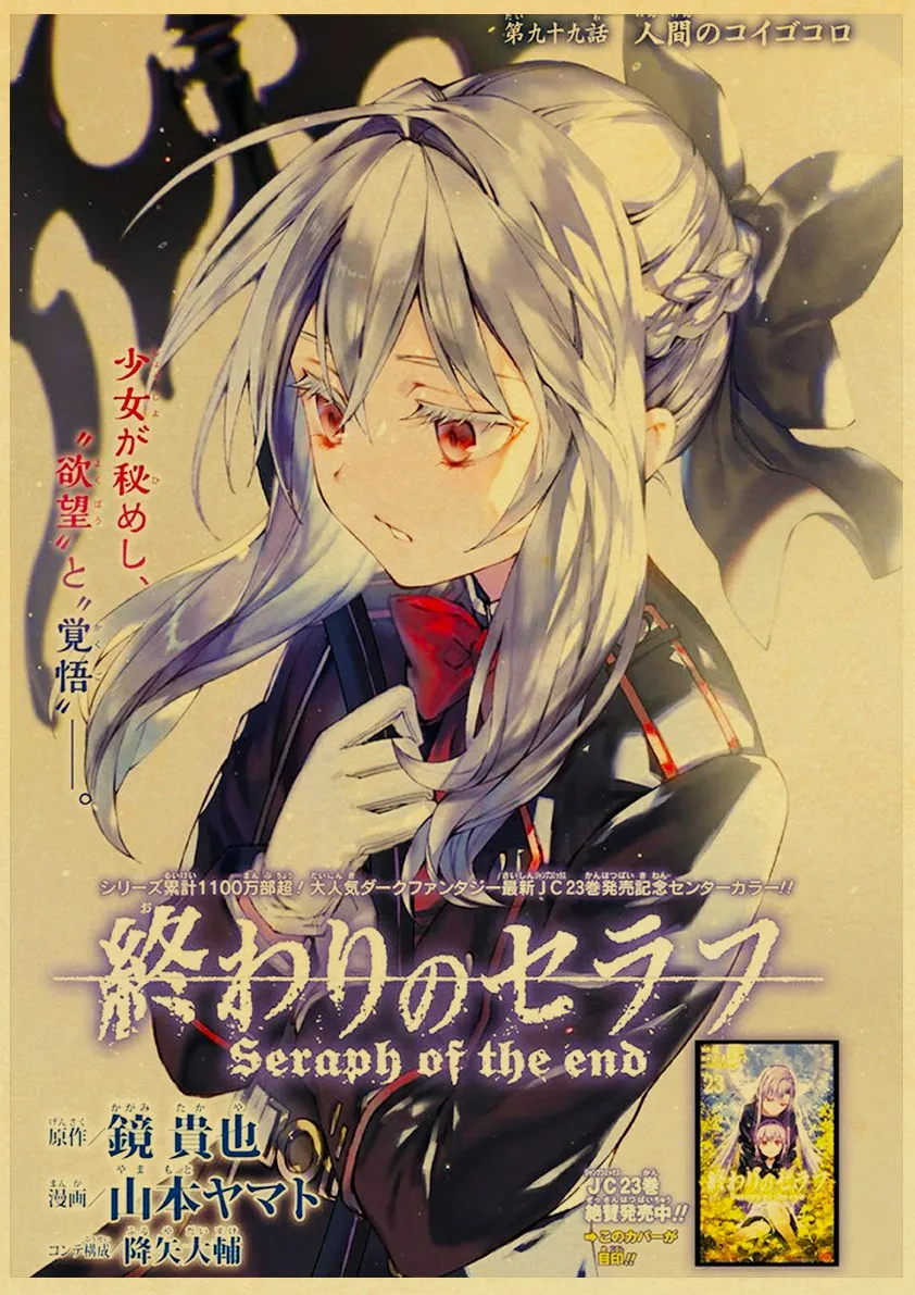 Постер в стиле ретро из крафт-бумаги Серафим конца японских фантазийных аниме, четкое изображение для комнаты, бара, домашняя живопись, Настенная Наклейка