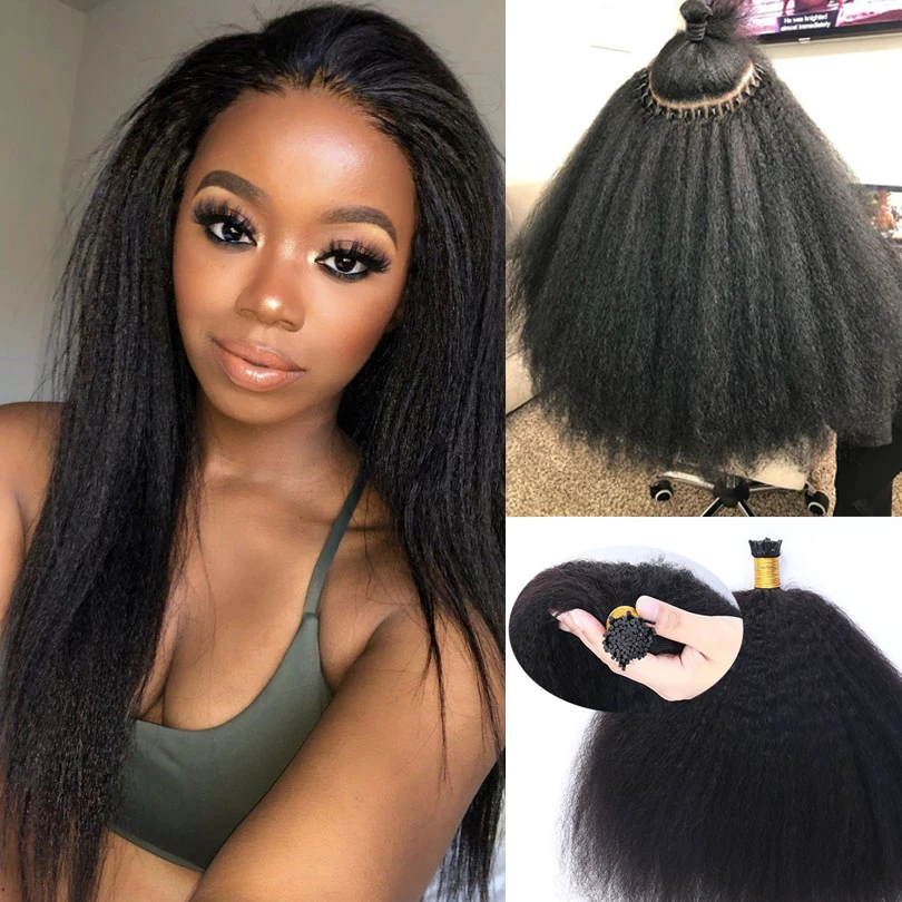 Прямые I-образные волосы для наращивания Kiny, 1 гпрядь для черных женщин, бразильские волосы без повреждения кутикулы I-образные натуральные волосы Microlinks Hair