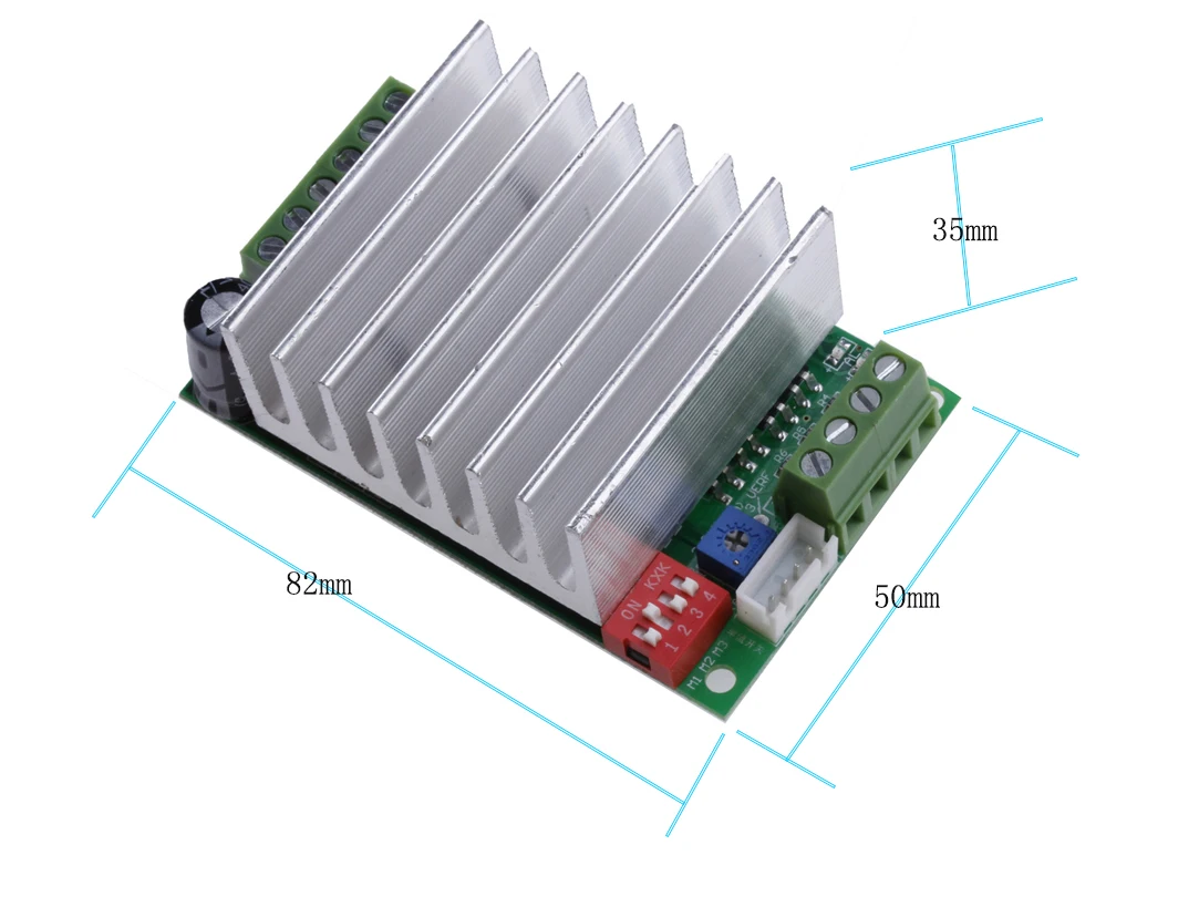 1. Рабочее напряжение DC 10V-35V. Рекомендуется использовать импульсный источник питания DC24V. 2.6N137 высокоскоростная Оптическая муфта, гарантирует высокую скорость, не теряя шаг. 3. Использование чипа TB6560AHQ с выключением низкого напряжения, остановкой перегрева и защитой от перегрузки по току для обеспечения оптимальной производительности. 4. Номинальная максимальная мощность: ± 3A, пик 3.5A. 5. Для двухфазного в пределах 42,57 шагового 3 а/четырехфазного/четырехпроводного/шестипроводного шагового двигателя, И не подходит для более чем 3а шагового двигателя. 6. Автоматическая функция половинного тока. 7. Разделение: весь шаг, Половина Шага, шаг 1/8, 1/16 шаг, максимум 16 делений.