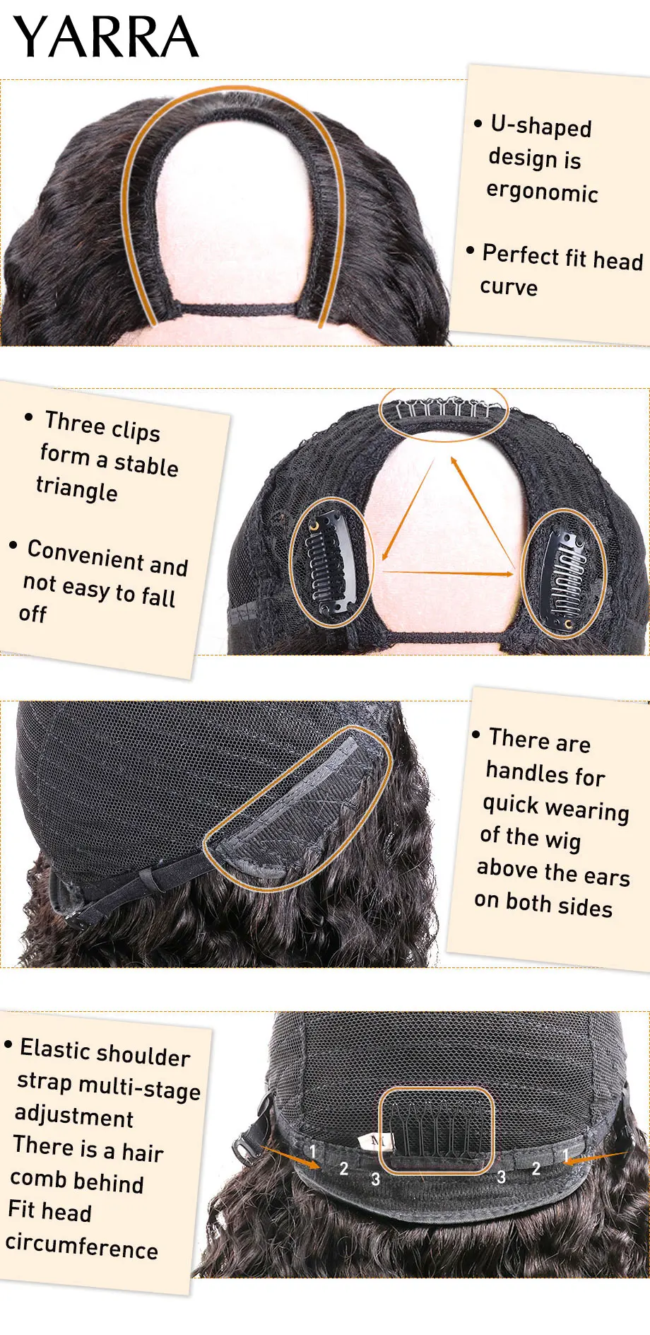 Бразильские объемные волнистые u-образные парики, человеческие волосы с клипсами, бесклеевая объемная волна, u-образные парики для женщин, машинное производство, 150% плотность, Yarra