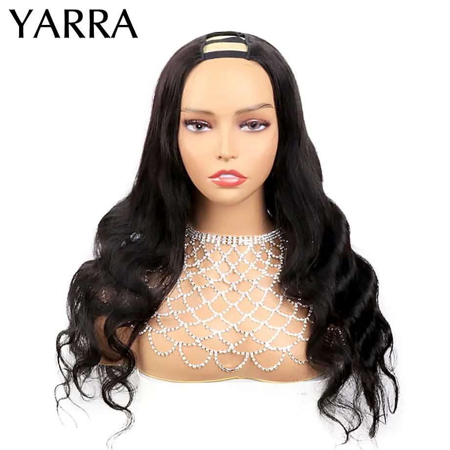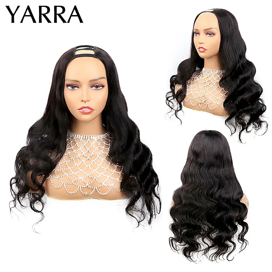 U-образный парик из натуральных волос с зажимами, бразильские U-образные волнистые волосы, плотность 150%, Yarra