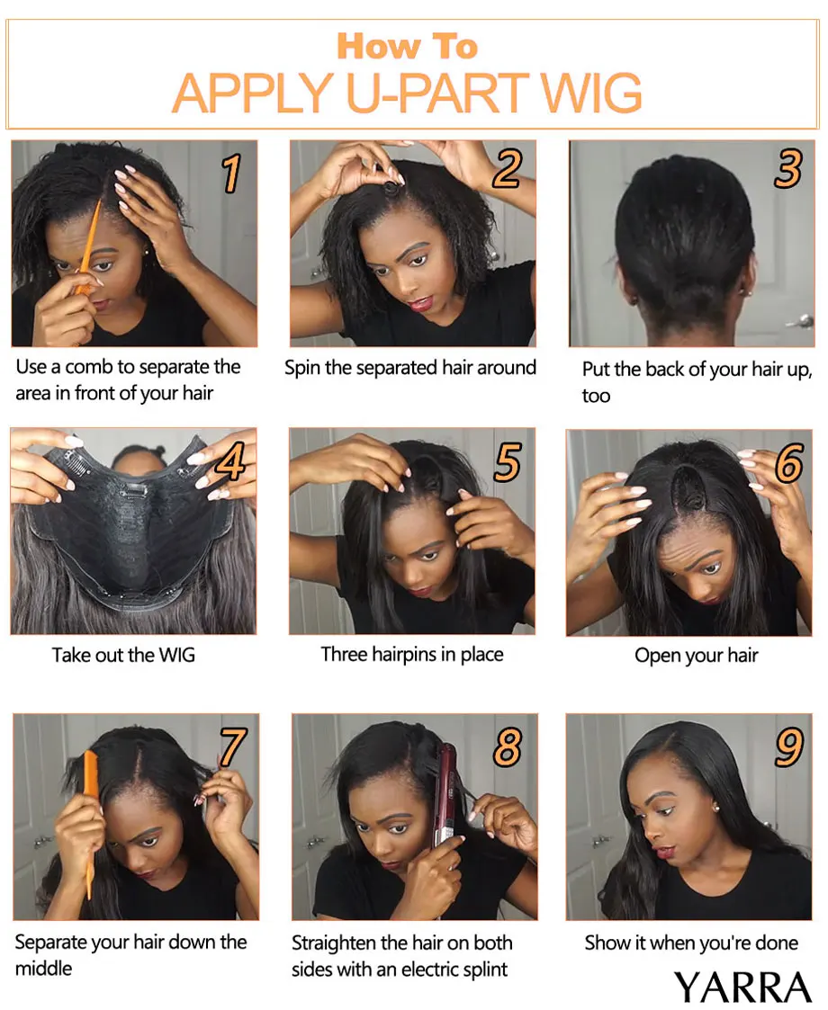Hair Material100% human hair wigs, Body Wave u part wig human hair with clips
