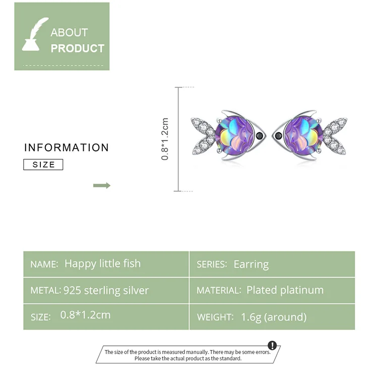 Wostu Новое поступление Разноцветные серьги из стерлингового серебра 925 пробы простые CZ маленькие рыбки для женщин Изящные серебряные ювелирные изделия FIE1028