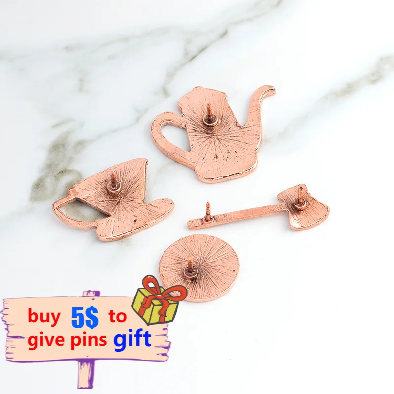 Винтажная брошь в стиле ретро с изображением чая, кофеварки, молока...