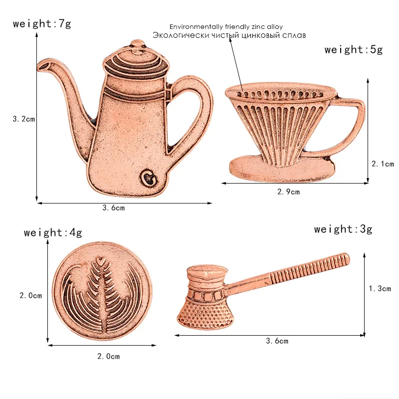 Значок с эмалью All About Coffee, в форме кофейных зерен, чашки, ла...